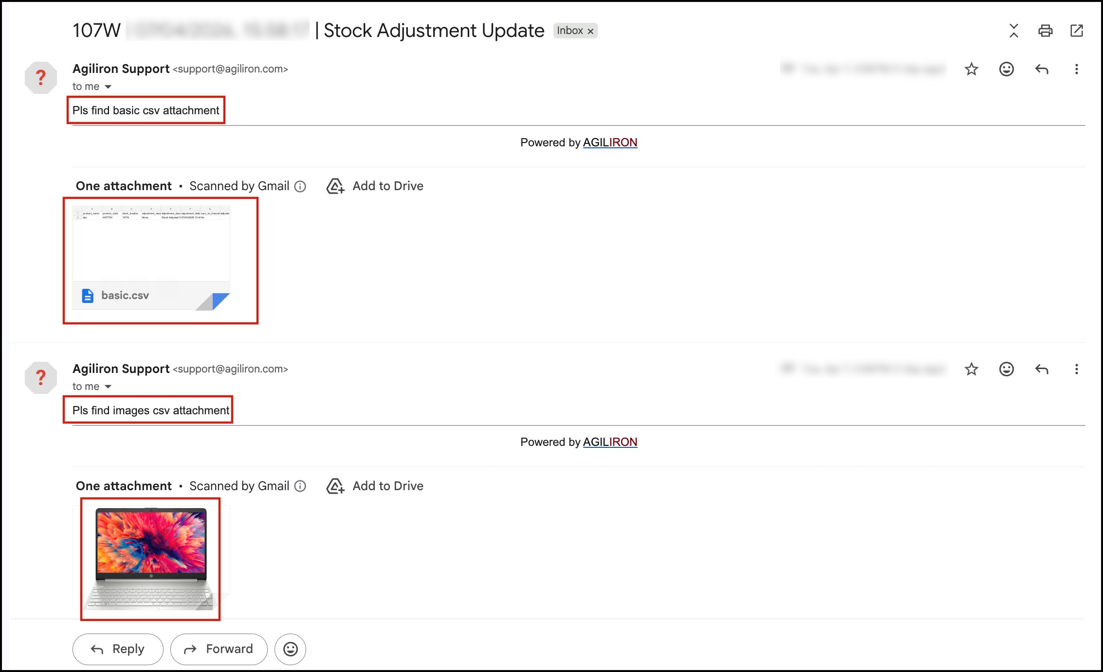 - If the Enable Auto Inventory Update Email setting is set to On, you will see a message asking whether you want to send an inventory update CSV email. Stock Adjustment update, along with the image added, will be emailed after clicking on OK.