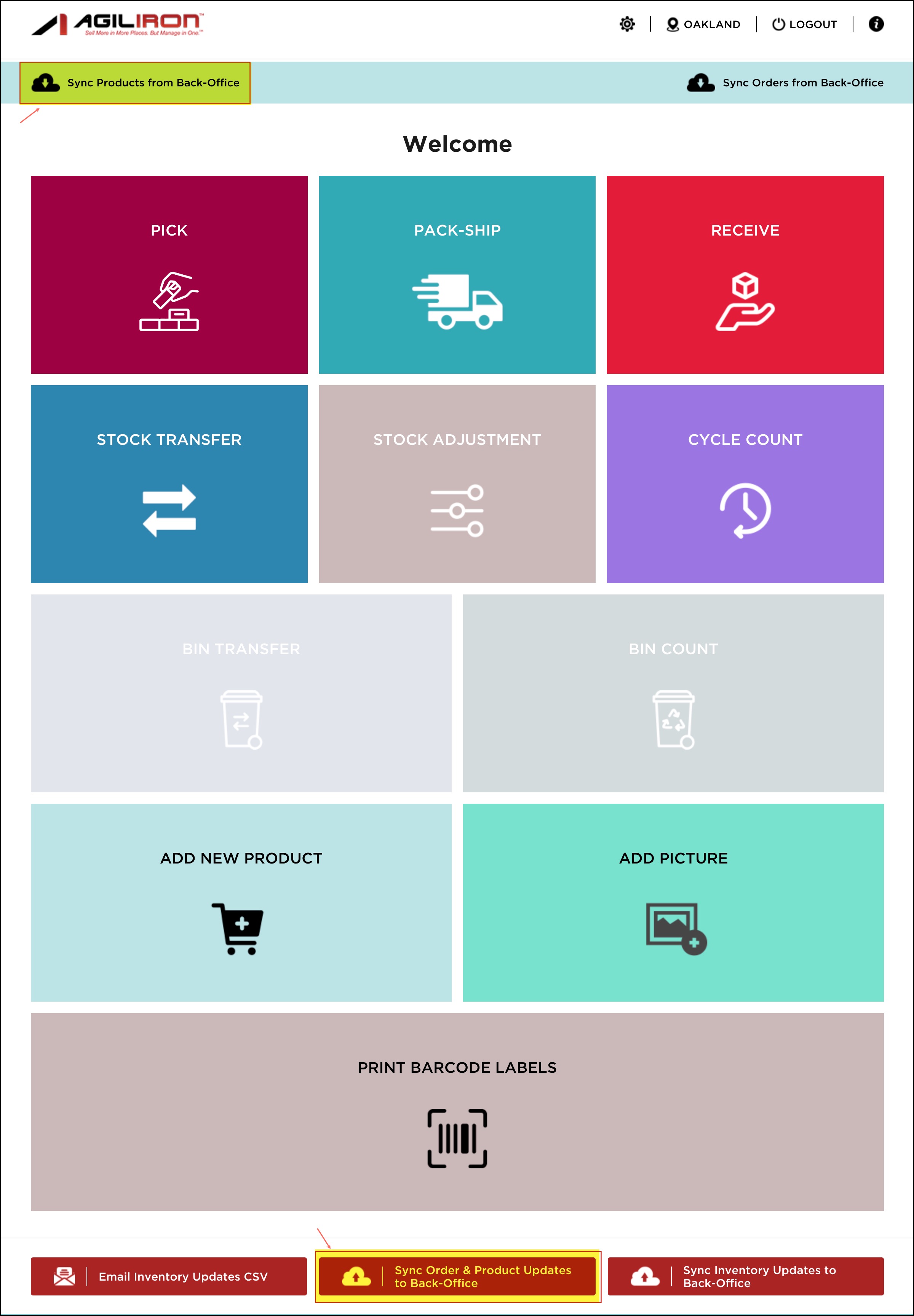 - Once the product has been created, you will be returned to the home screen. Click the "Sync Order & Product Updates to Back-Office" to update the back office with the new product. Then, select "Sync Products From Back-Office".