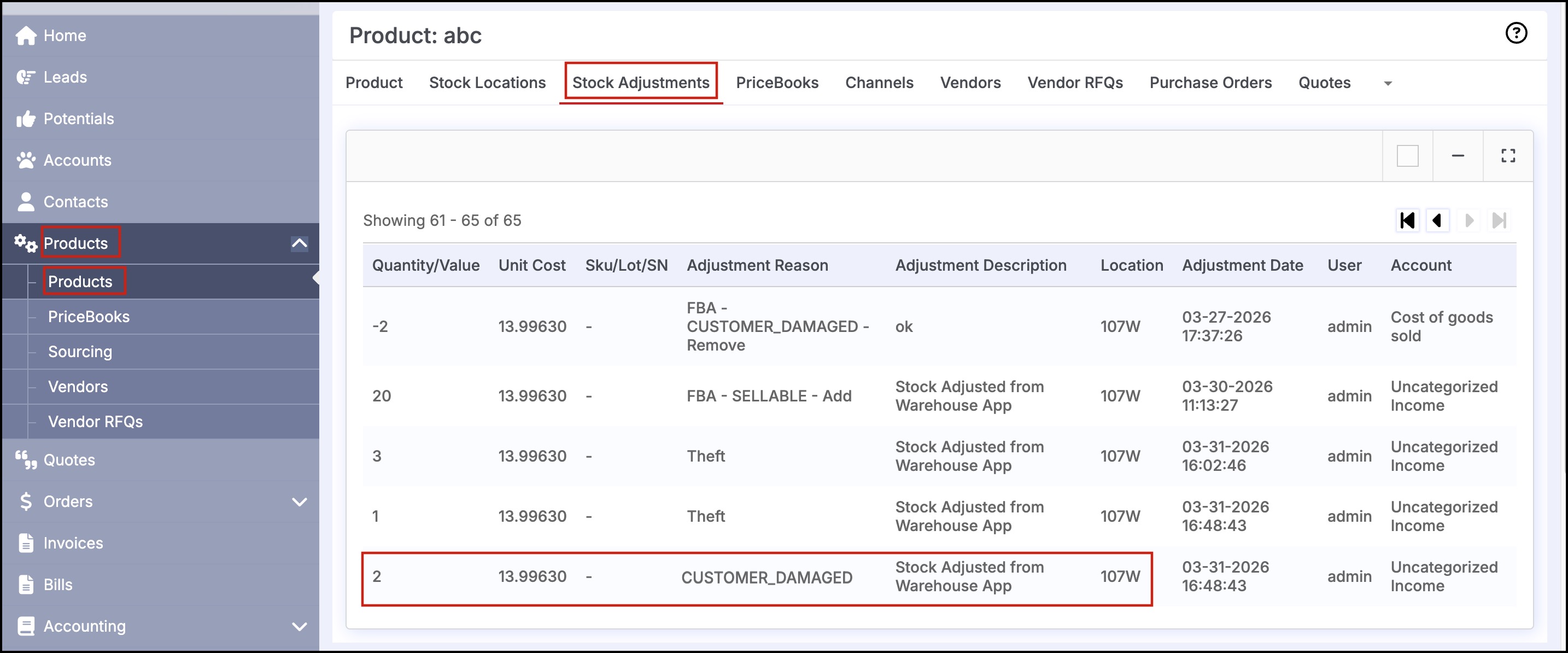 Also, you can see the Stock Adjustments made.