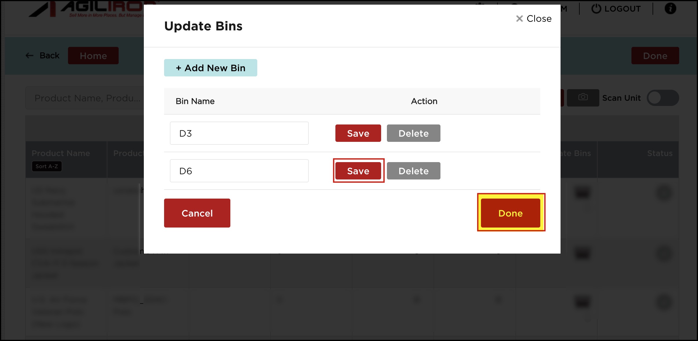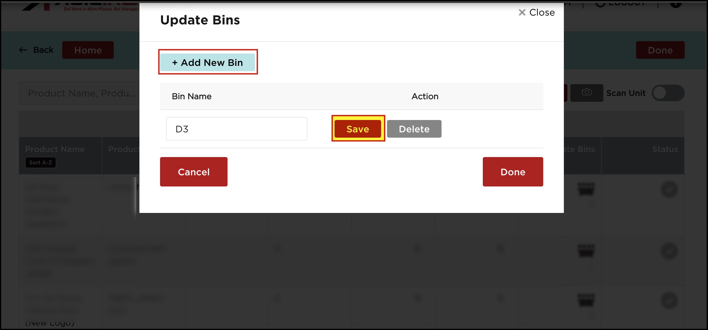 - You can also add multiple bin locations by clicking on the + Add New Bin button.