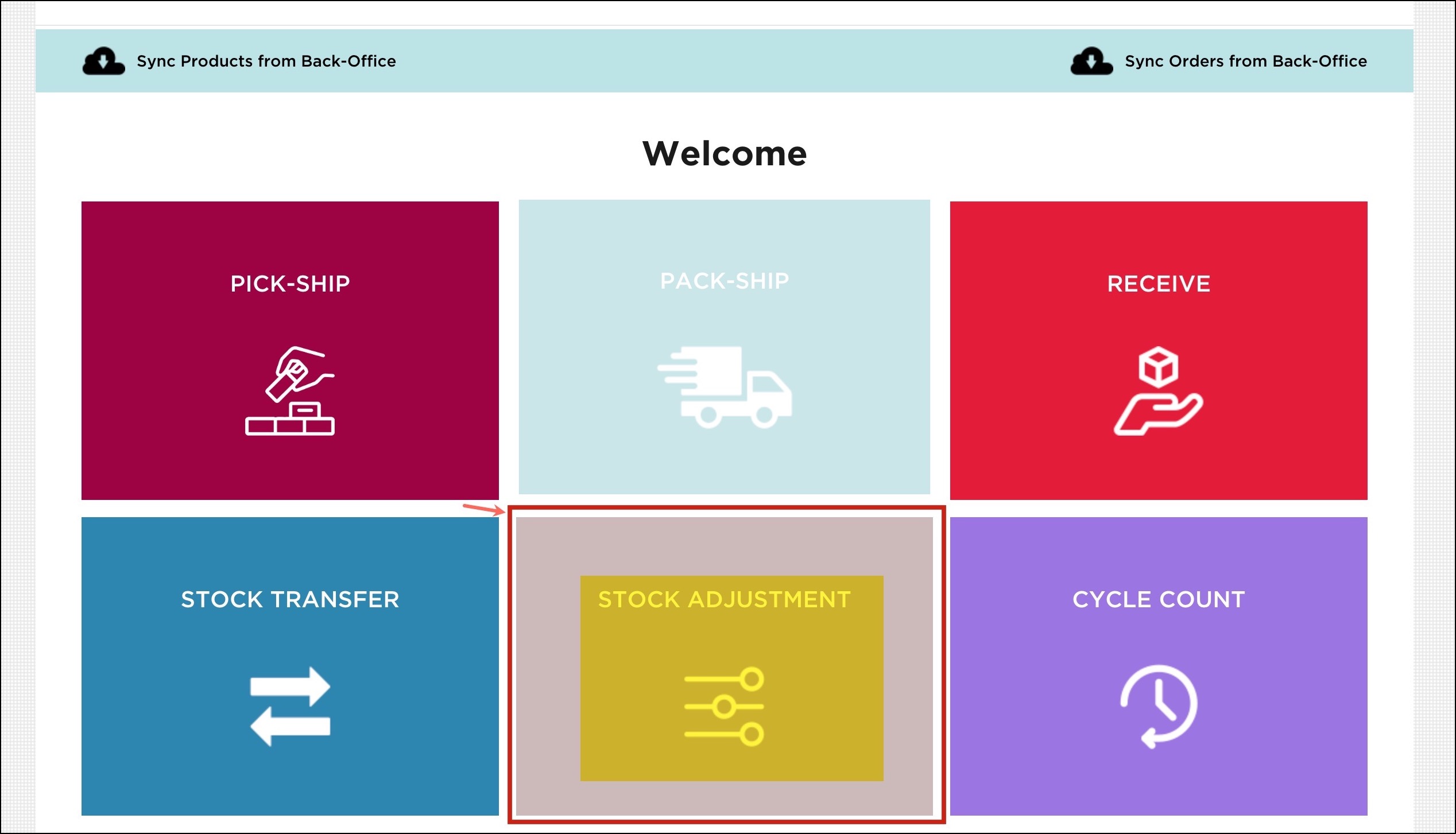 Once this feature is enabled, log in to your warehouse management app and go to the Stock Adjustment workflow.