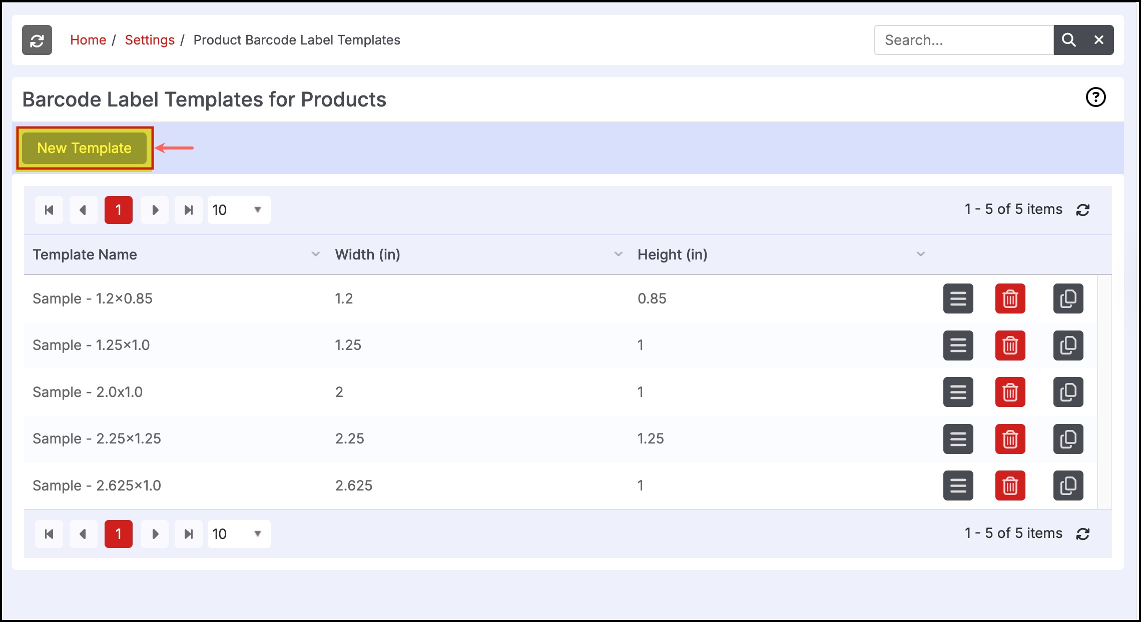 Go to Settings -> Communication setup -> Product Barcode Label Template.