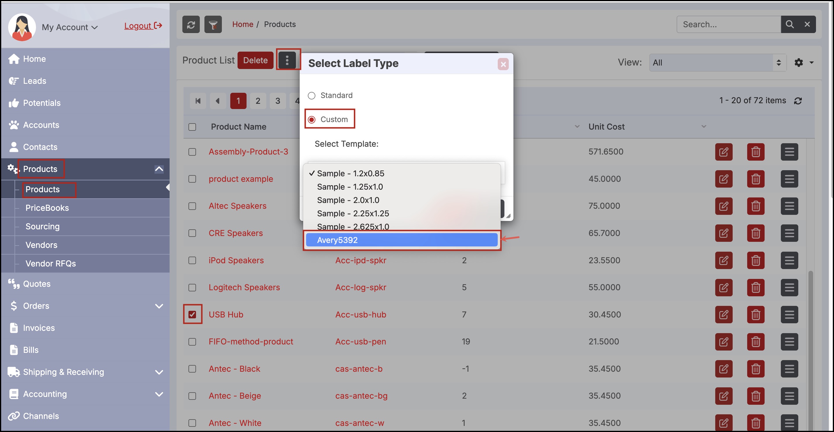 Now when you print barcode for any particular product, you can select template Avery5392 from the custom label type and follow the step-by-step process to print the barcode.