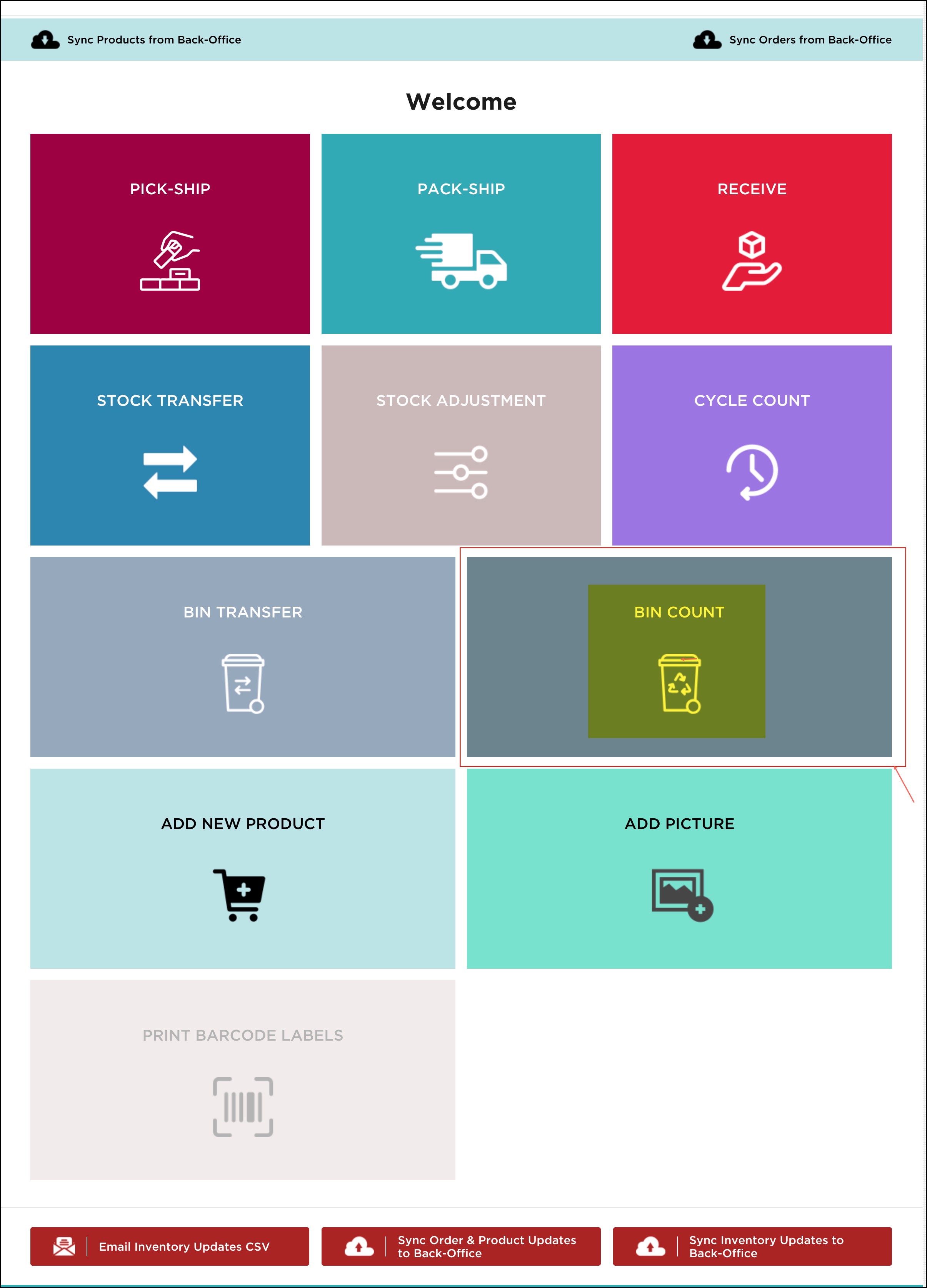 - Click on the Bin Count button on the home screen to begin.