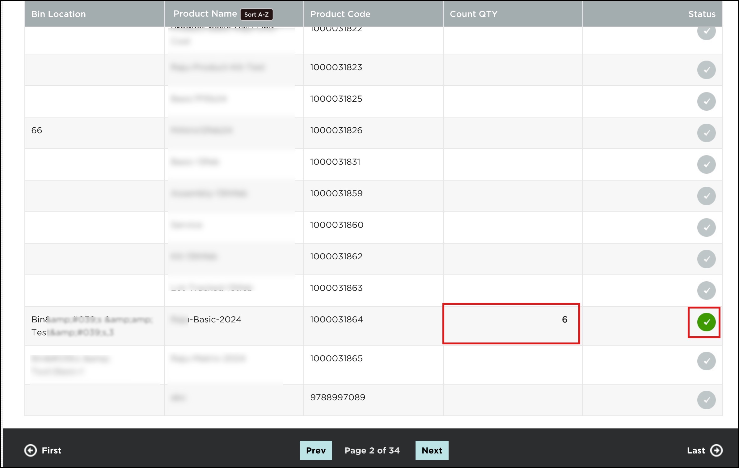 Once the Count QTY is added, you will notice the status of that particular product turns green.