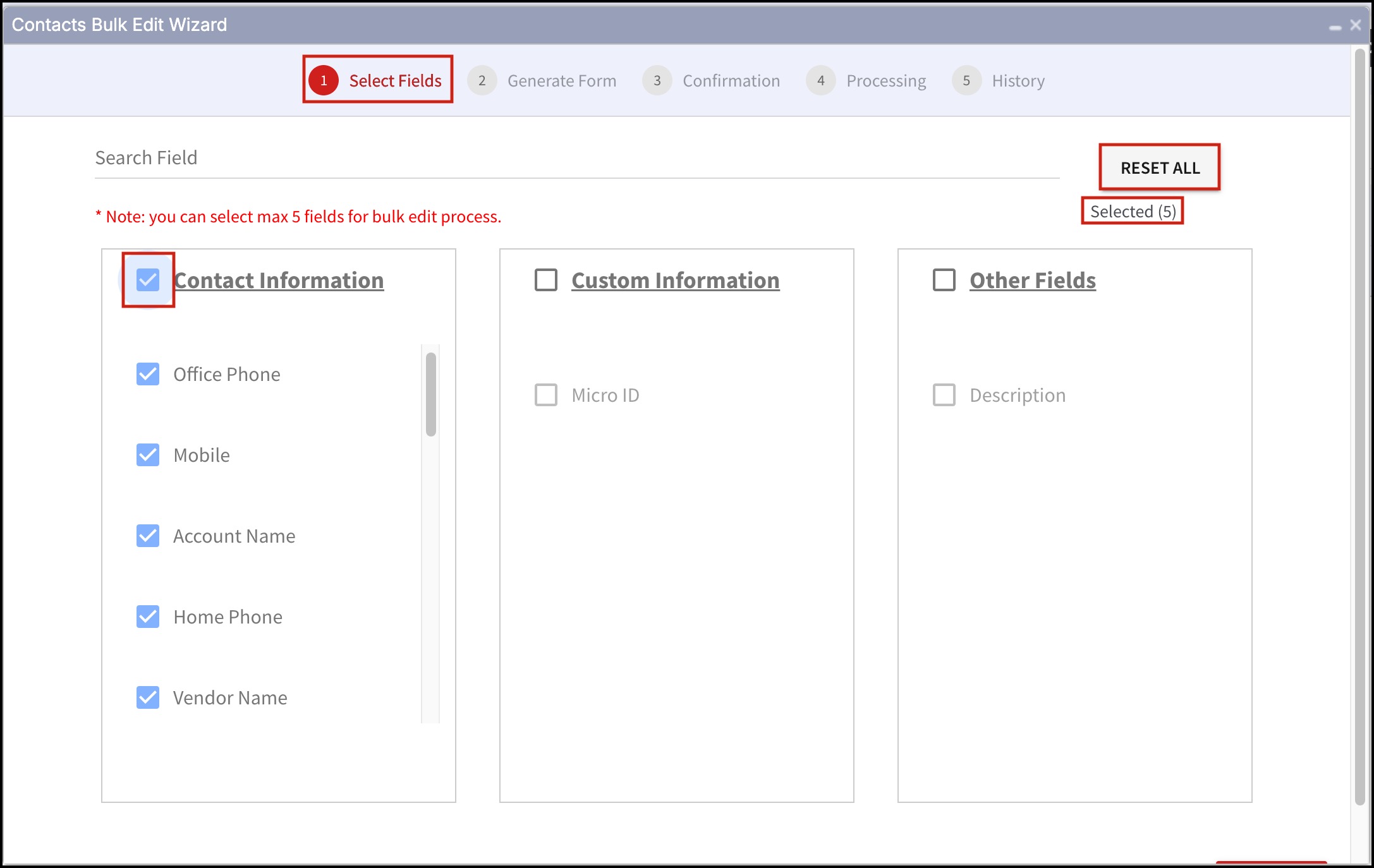 NOTE - You can select a maximum of 5 fields to perform bulk edit.