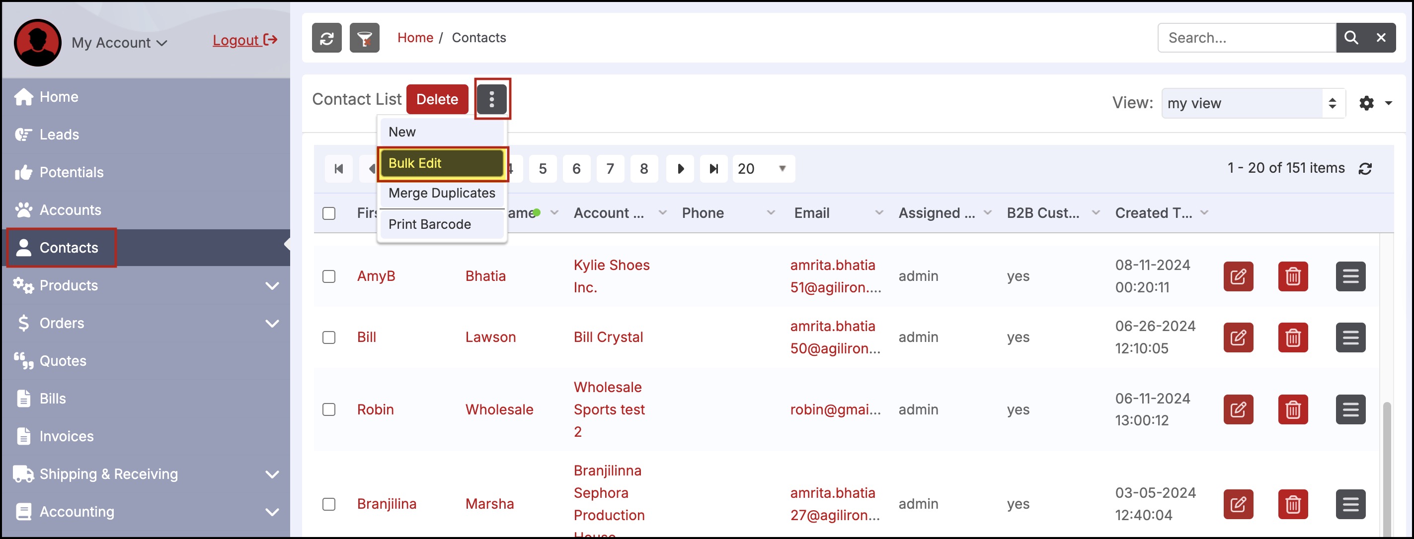 Bulk Edit - Contact List View