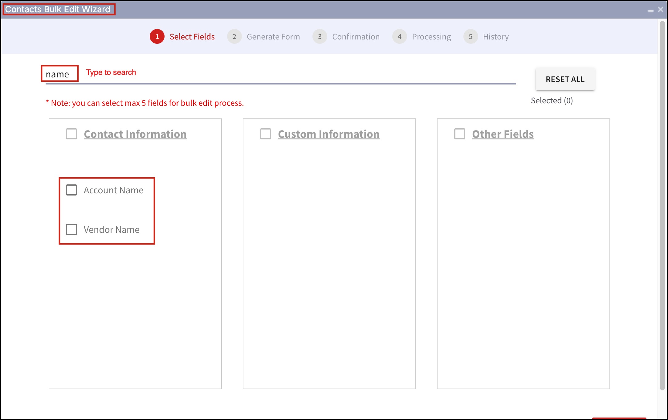 - In step 1, select the fields that need to be edited.