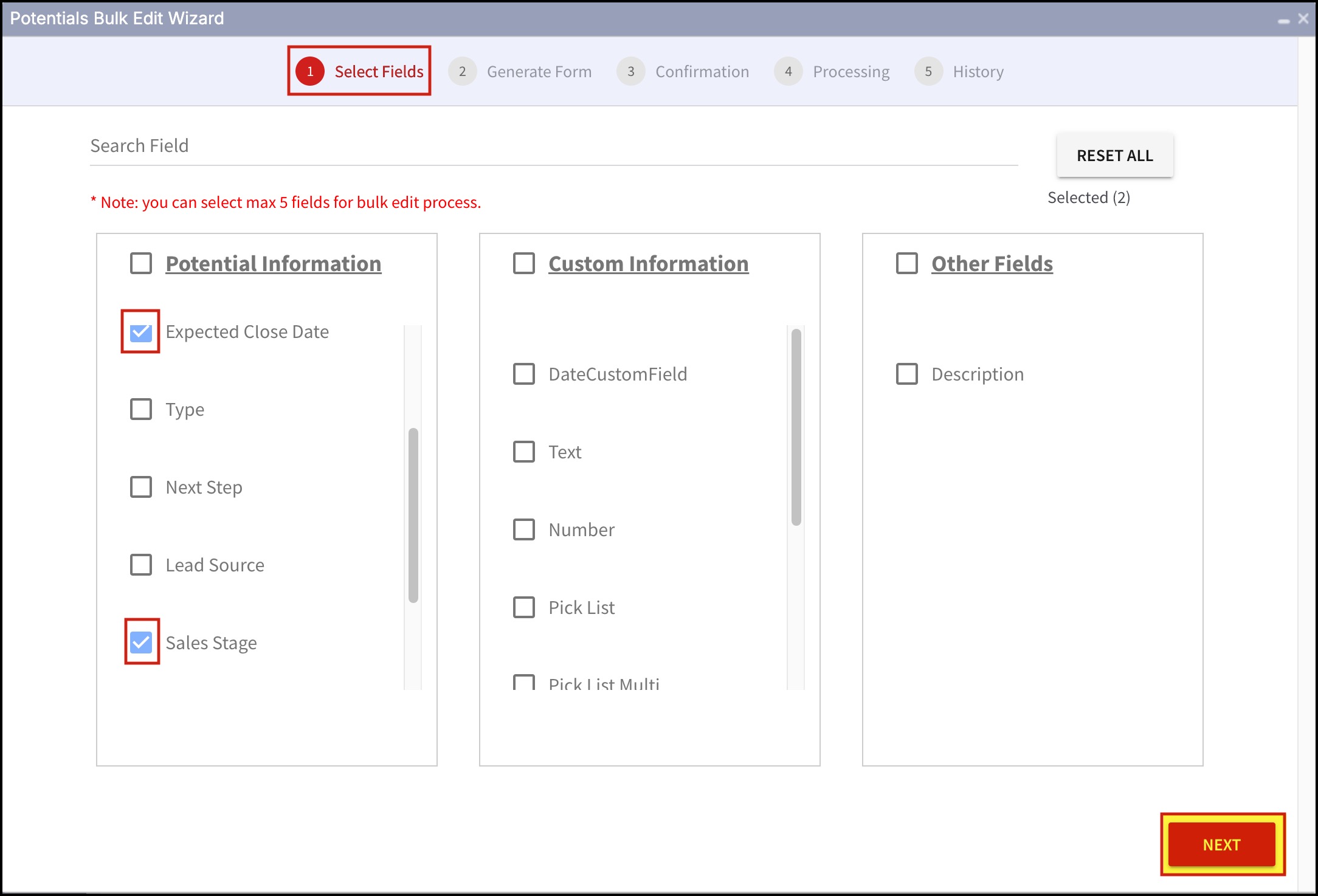 Whether you want to change the potential information or other necessary fields related to potentials, bulk edit feature allows you to modify and update maximum 5 fields at a time.