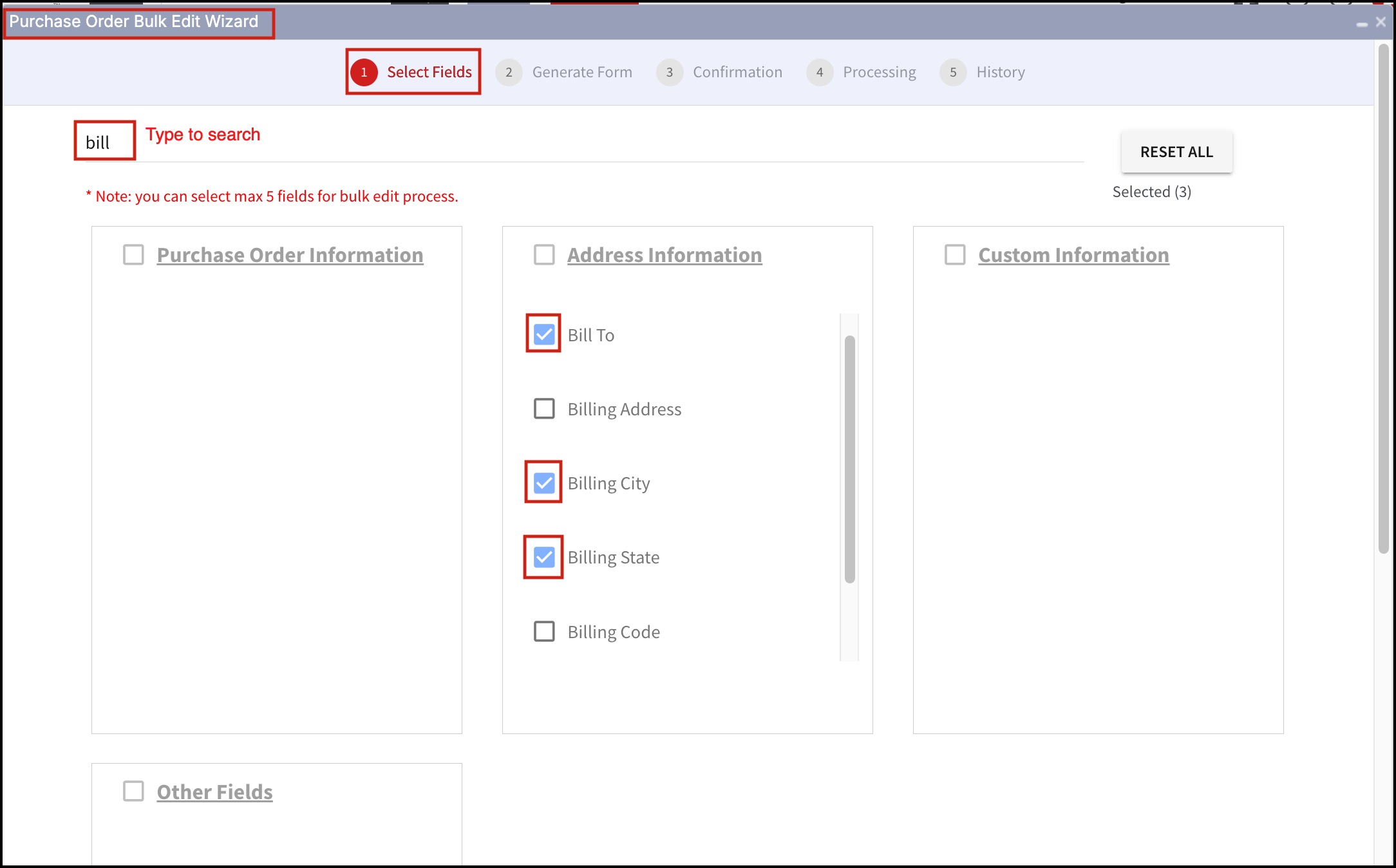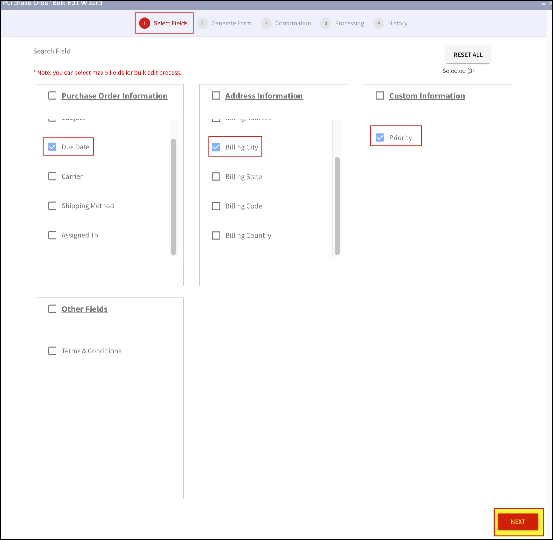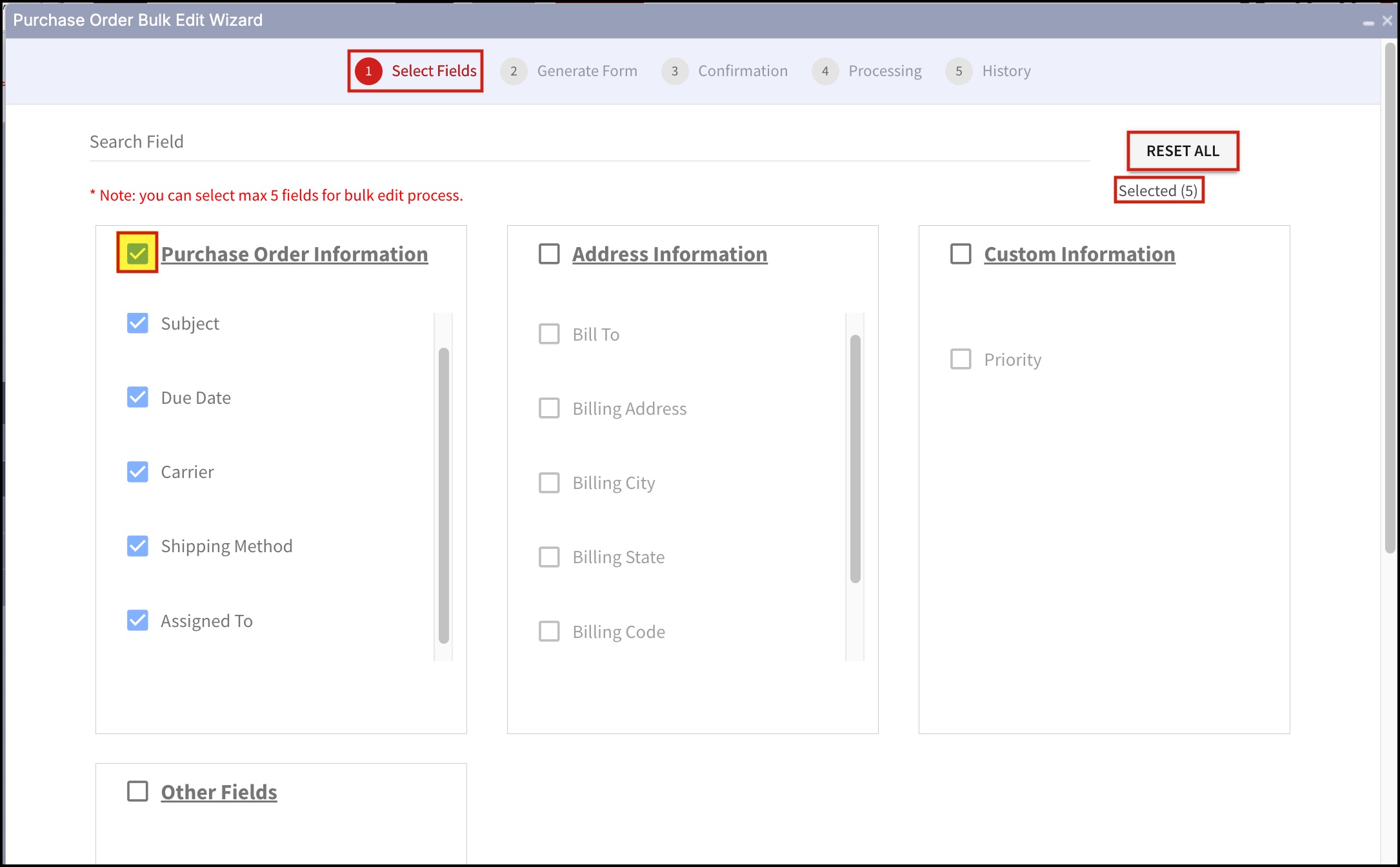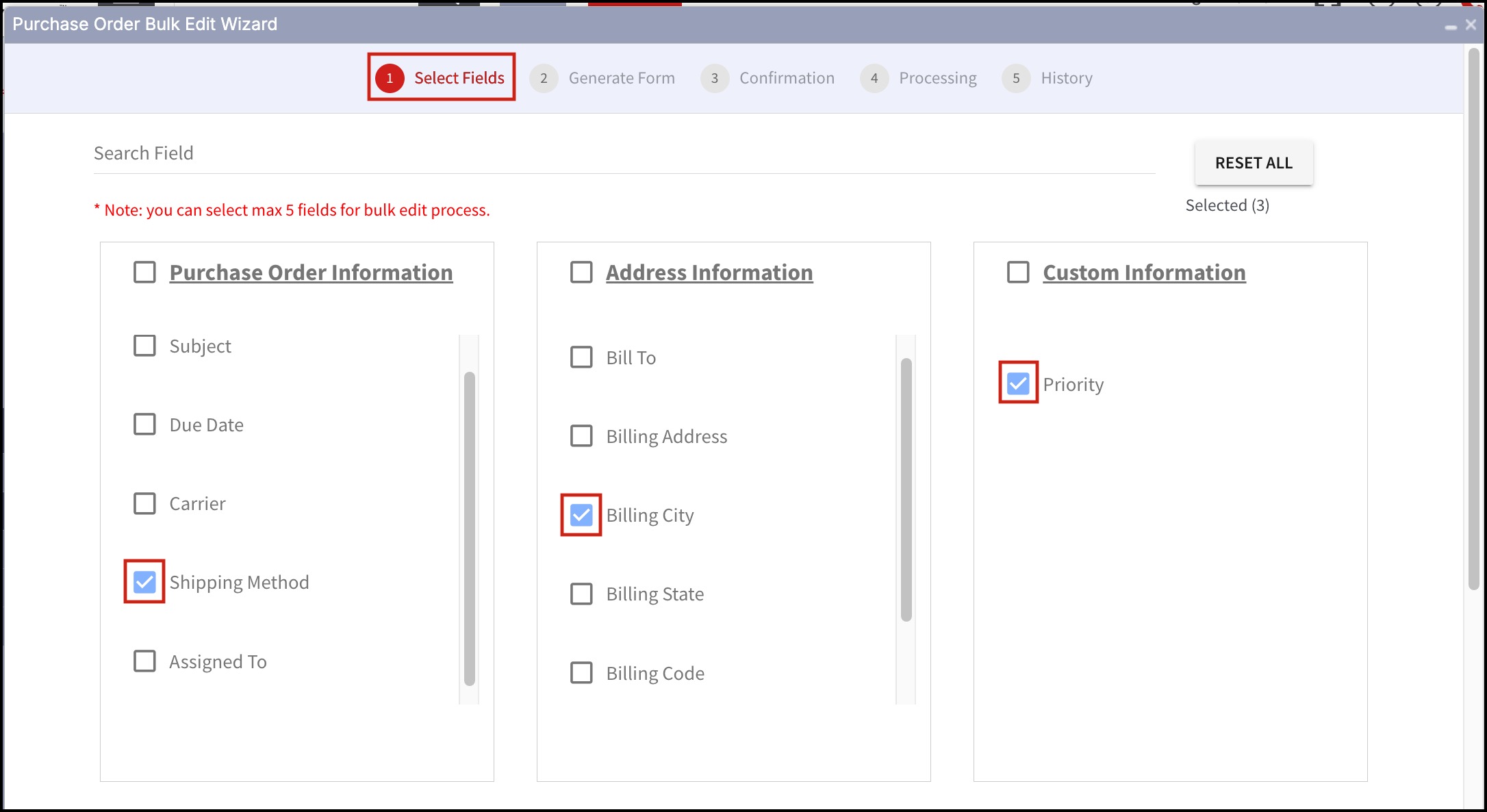 NOTE - You can select maximum 5 fields to perform bulk edit.