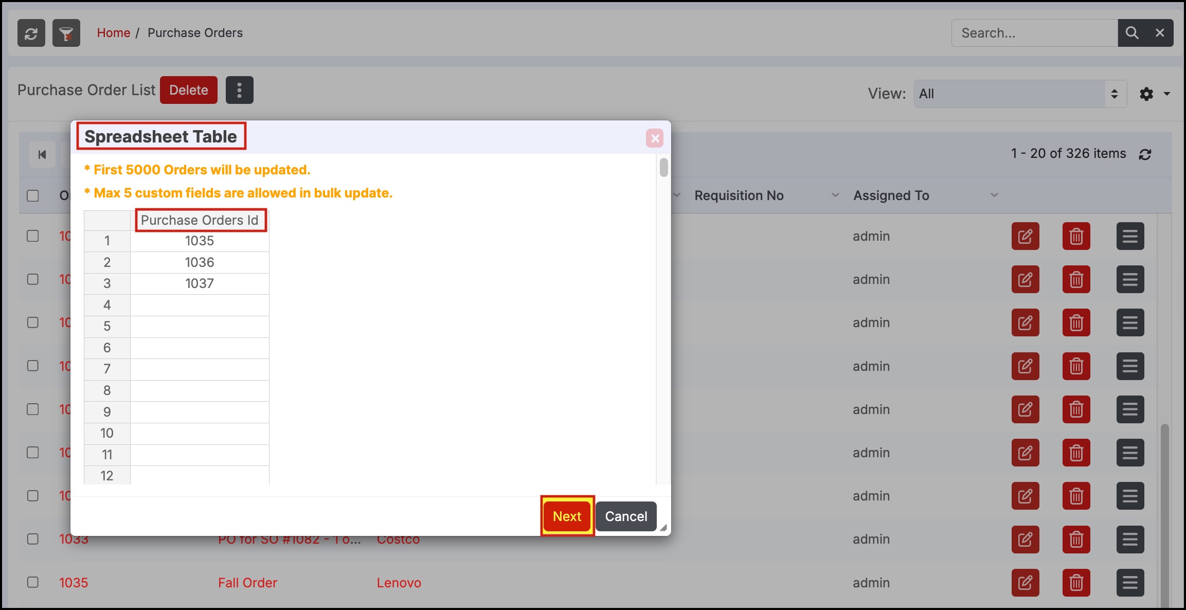 Check the Purchase Order Bulk Edit Wizard - Step by Step Process section for further instructions.