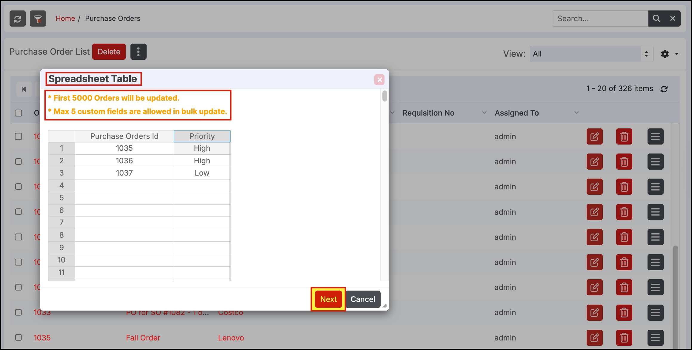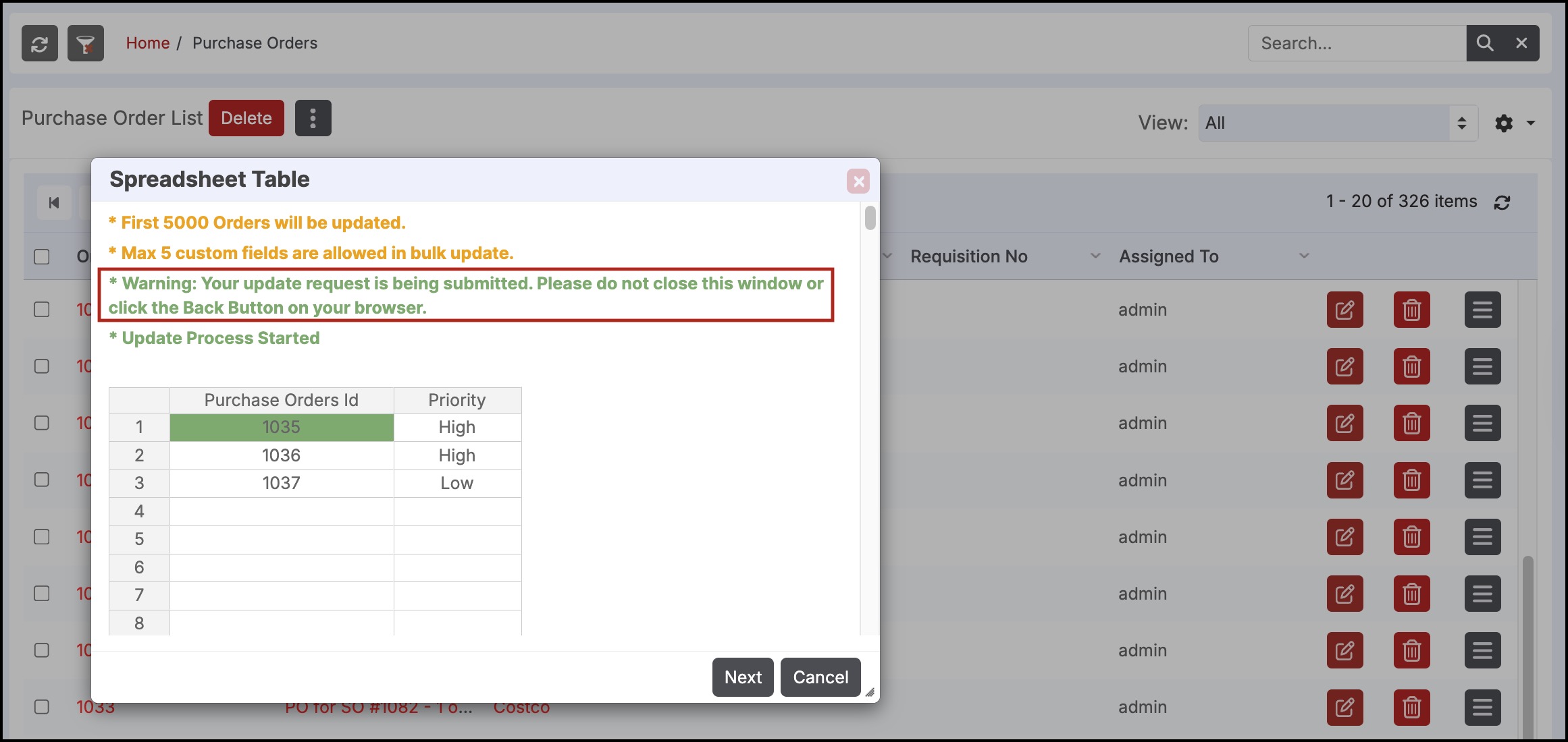 Instead of updating one-by-one purchase orders, update the existing purchase orders in bulk and save much time and effort.