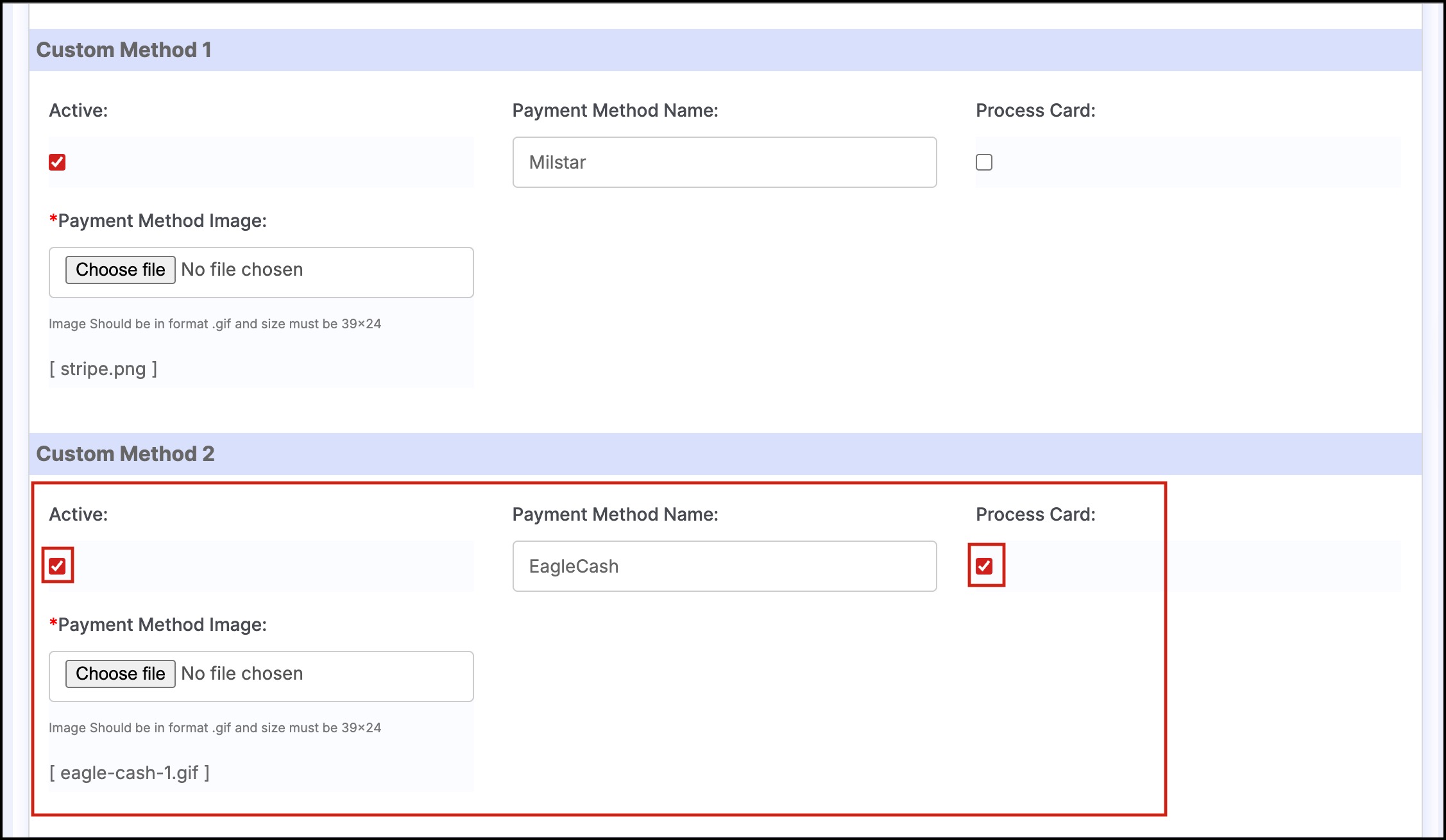 - After ticking the checkbox, you can see the Custom Payment Methods option appears.