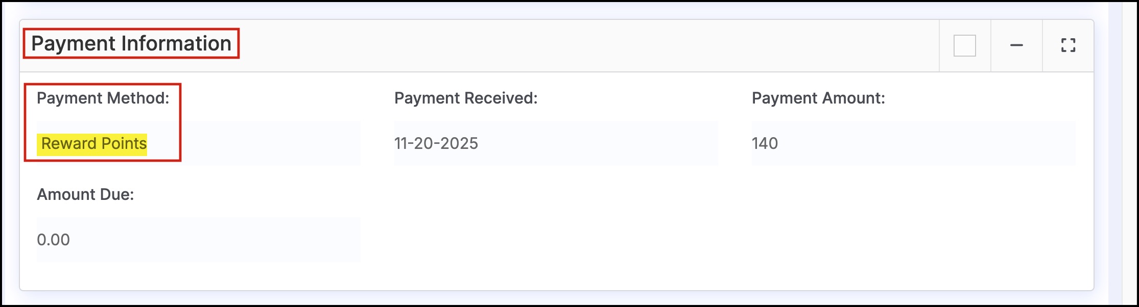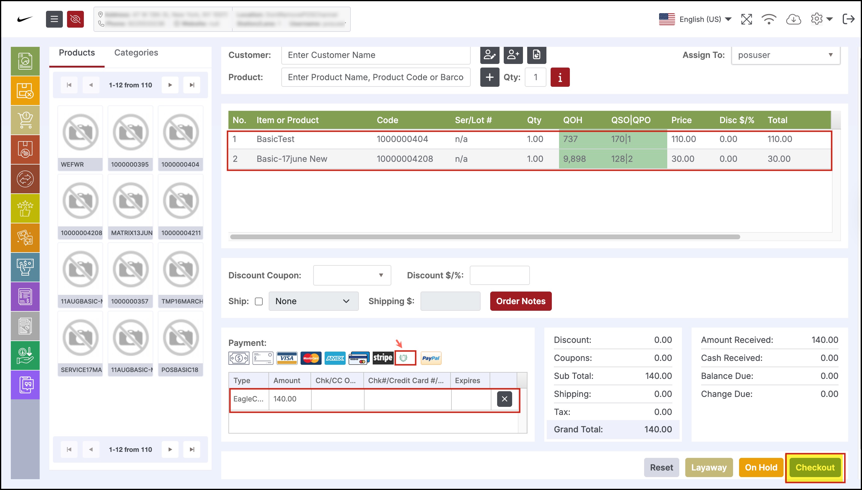 - You can see the payment method that you had mapped for the Custom payment method 2 (EagleCash) - Reward Points.