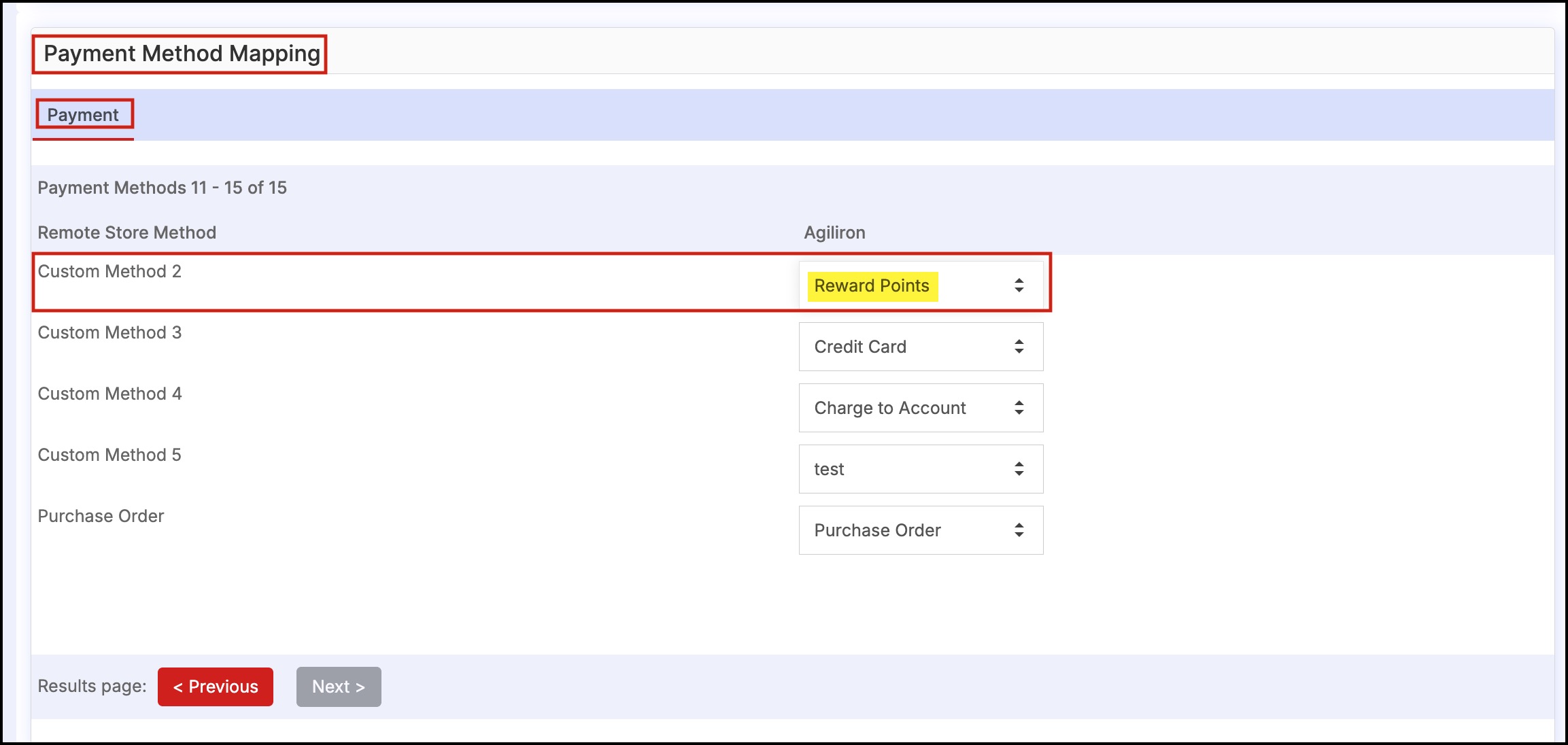 - Below Channel configuration there is Payment Method Mapping where you can map the custom payment methods to any payment method you want.