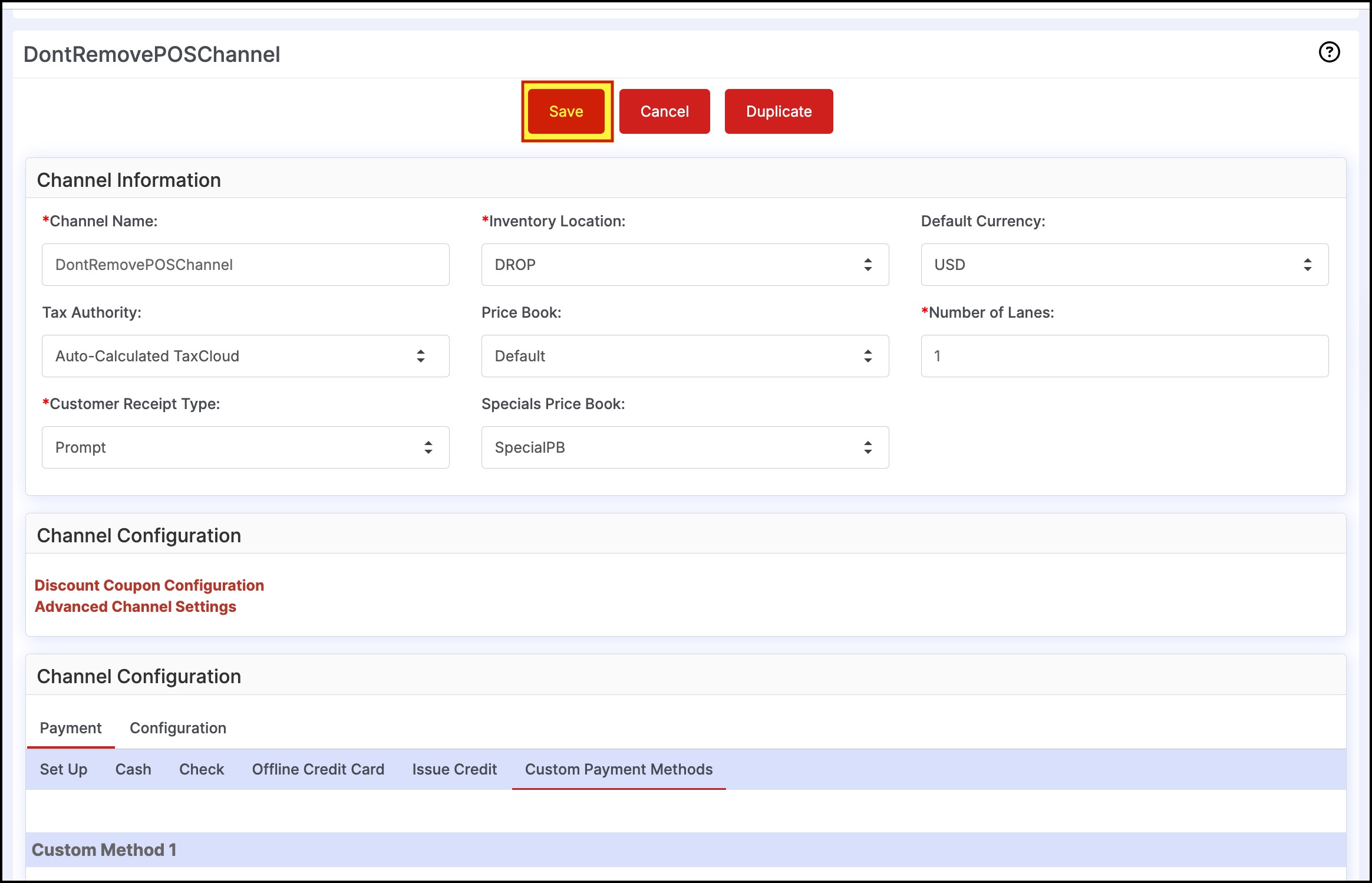 - Click on the Custom Payment Methods