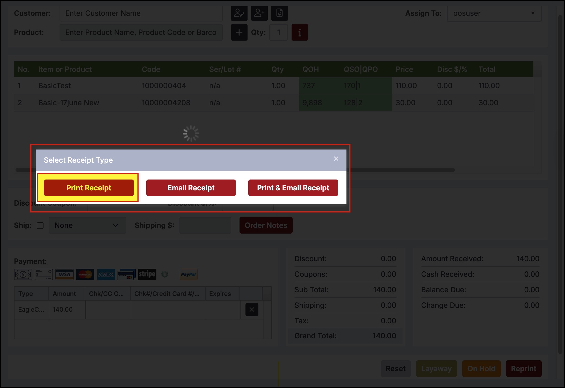 - Then on Print Receipt