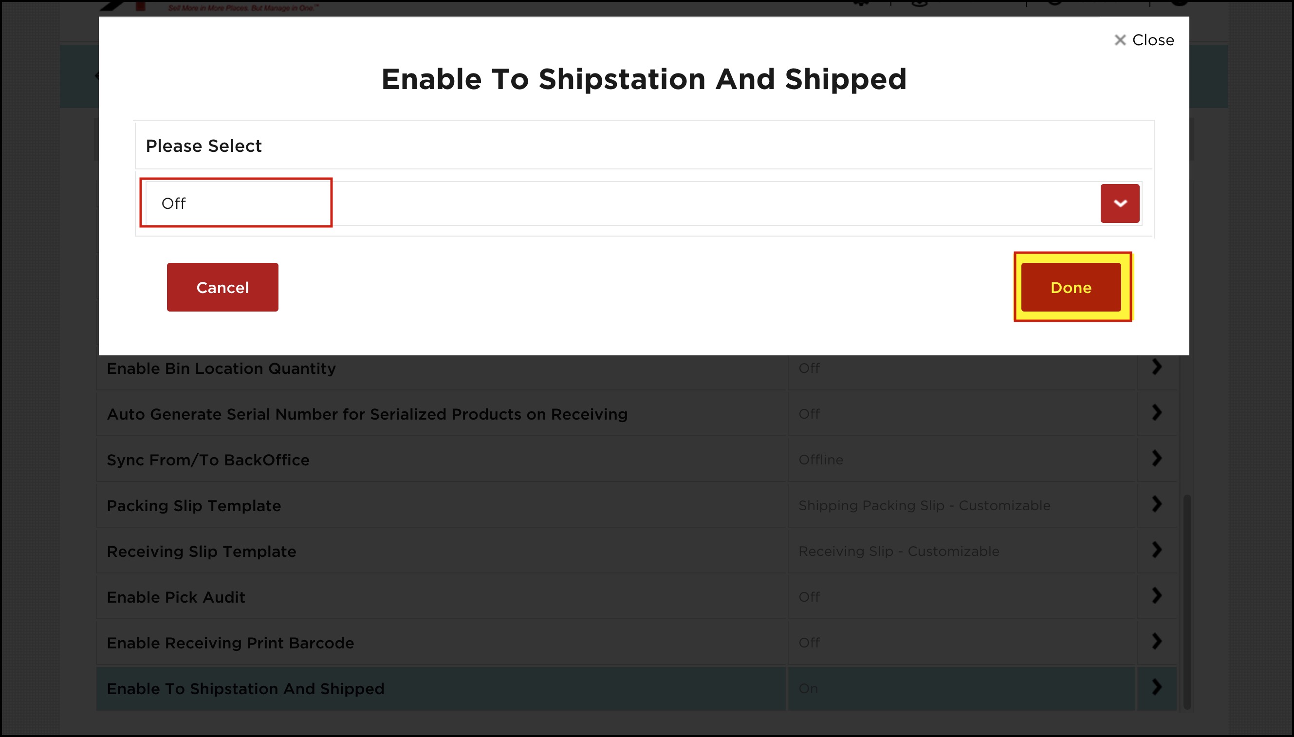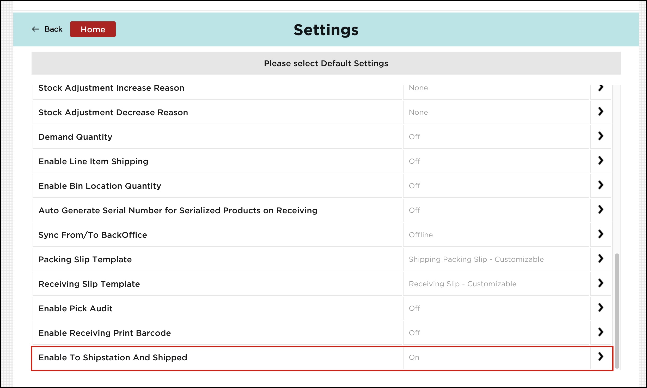 - Enable To ShipStation And Shipped - This setting is by default set to 'On'. If the Pack-Ship workflow is enabled, then the send To ShipStation and Mark Shipped options are available in the Pack-Ship flow.