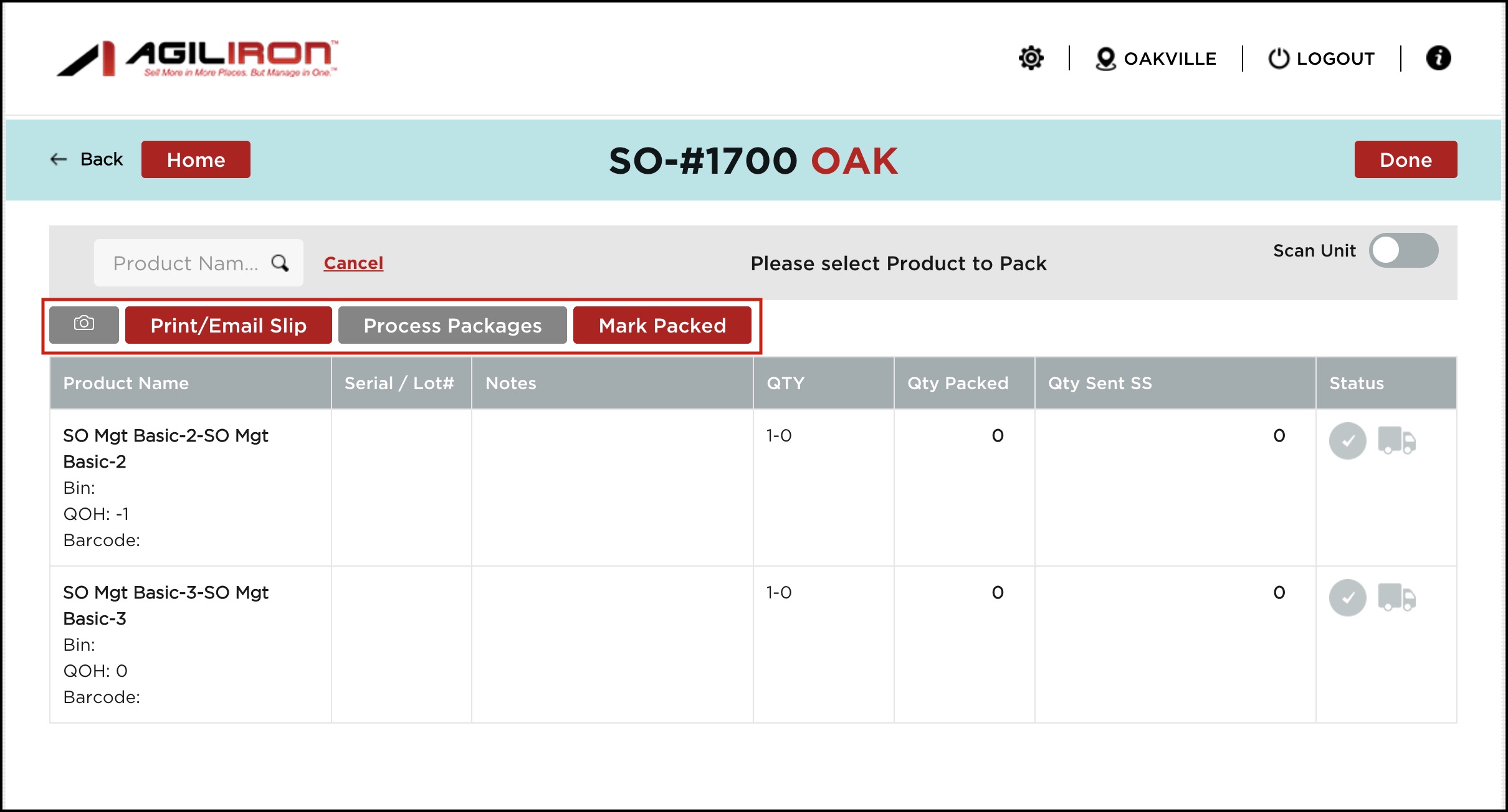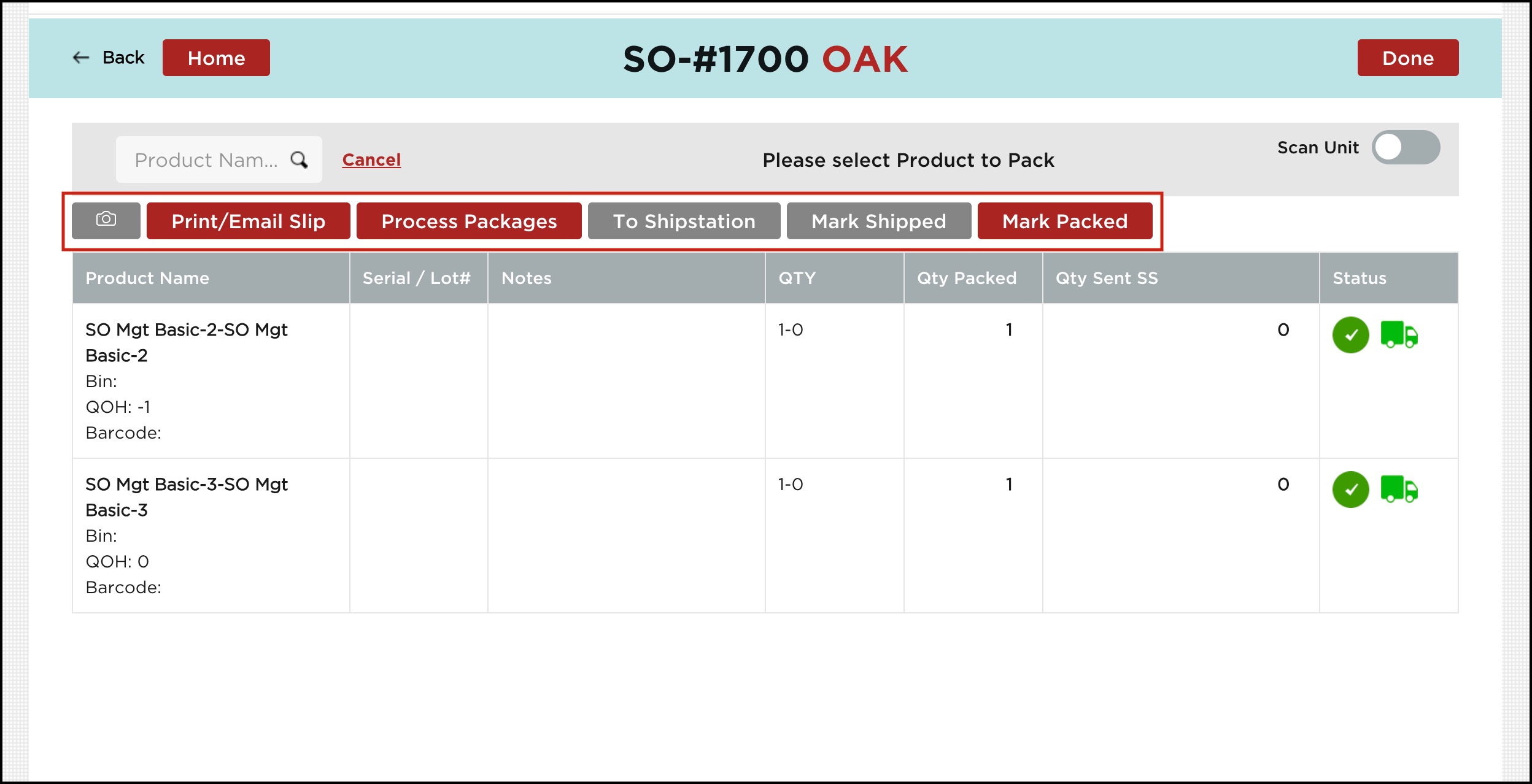 - By default, it is set to off. When line item shipping is enabled, in the Pick-Pack-Ship flow only Line Items in Sales Order, associated with the Selected Stock Location (top left location in the warehouse app home screen) will be displayed.