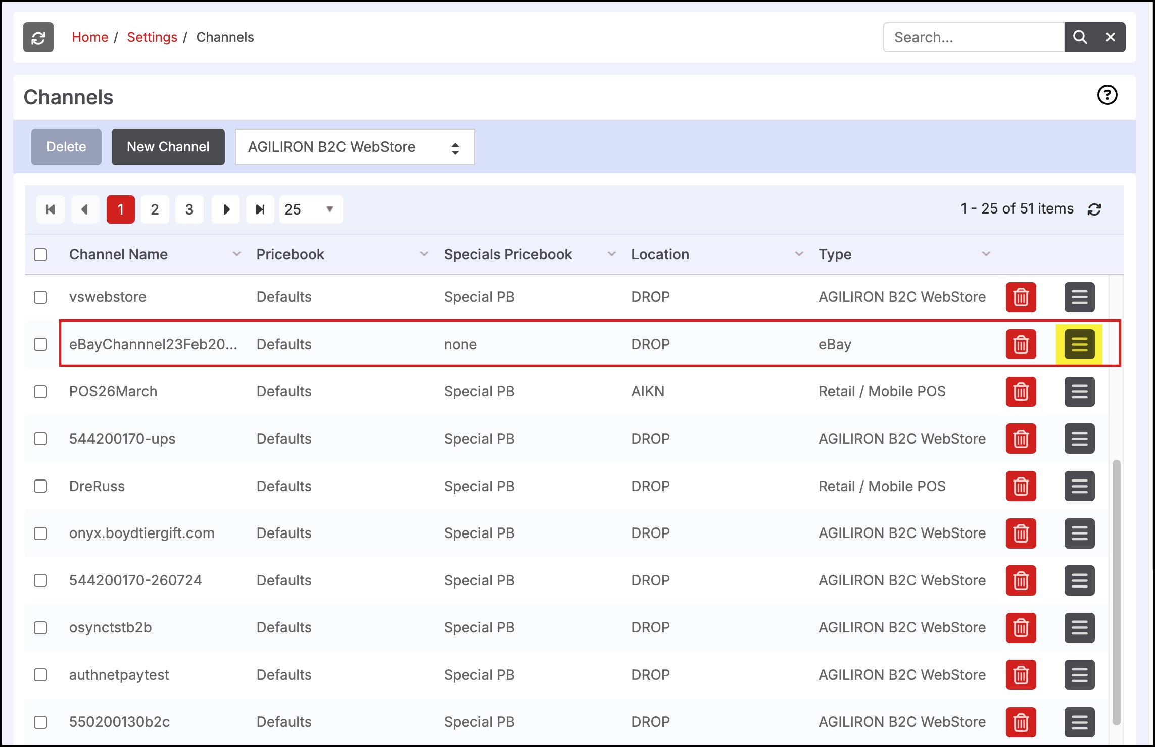 - Click the "Edit" button next to the eBay channel under Settings > Channels.