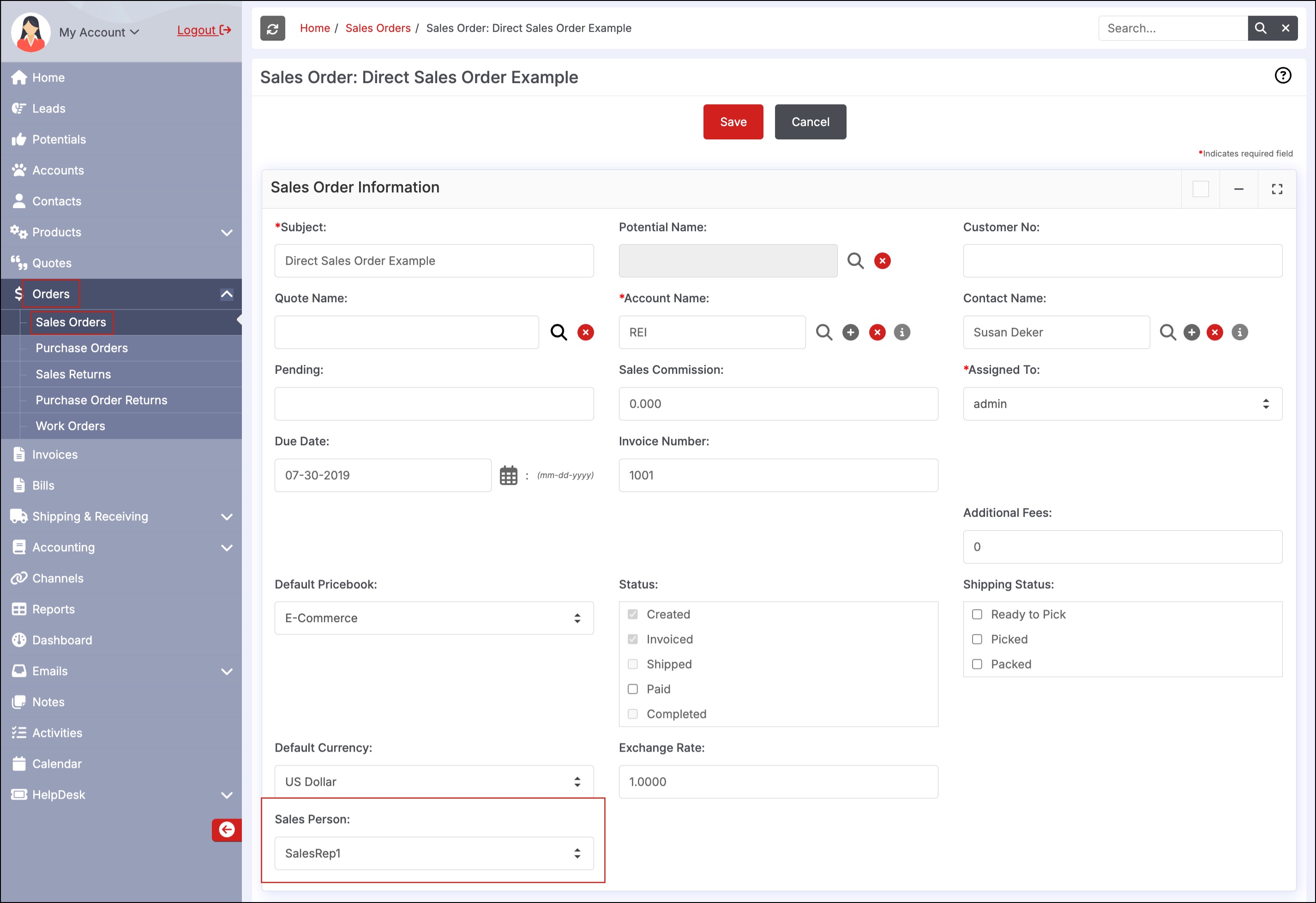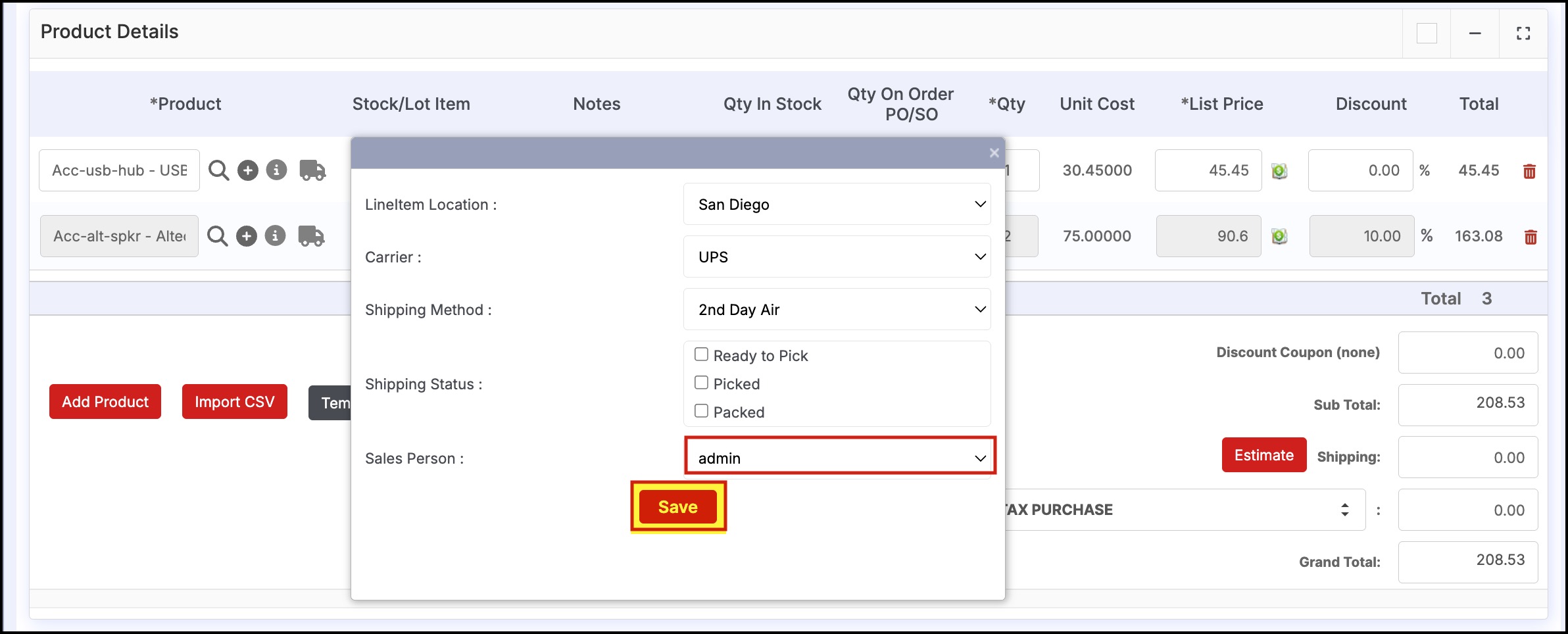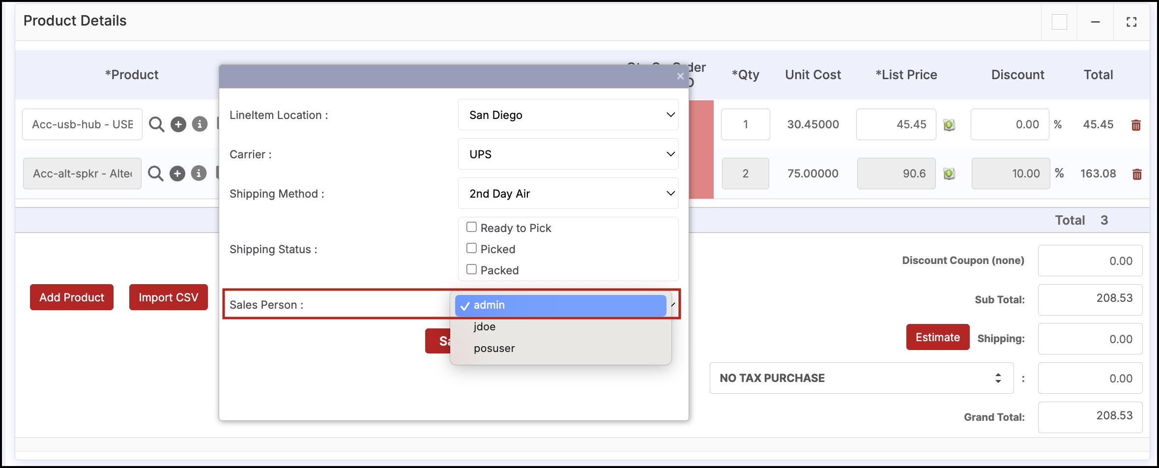 If Line Item Shipping is enabled, then the Sales Person selection drop-down is now available for each line item in the Sales Order.