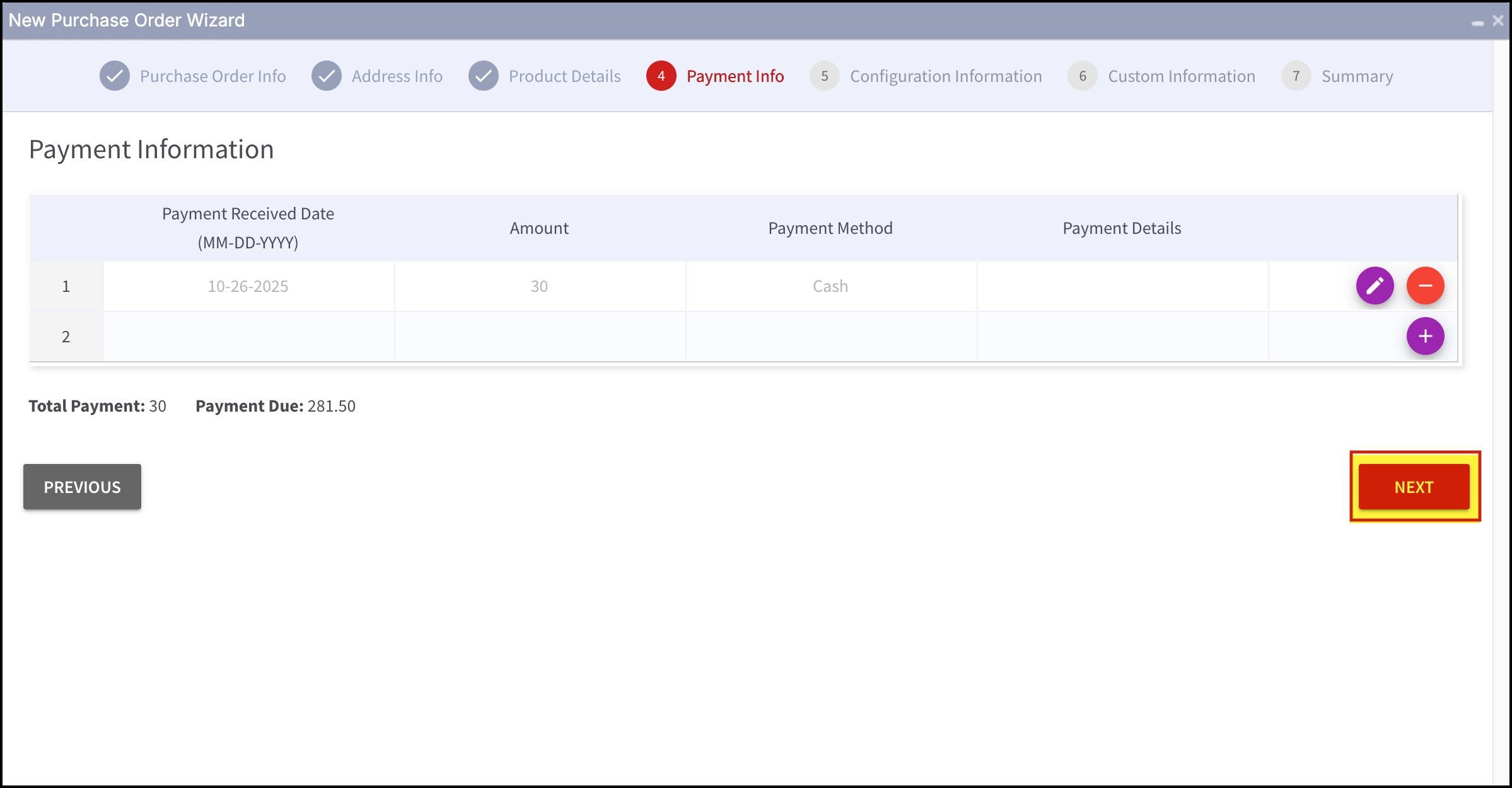 - This will open up the New Purchase Order Wizard window. The Purchase Order Information will appear first.