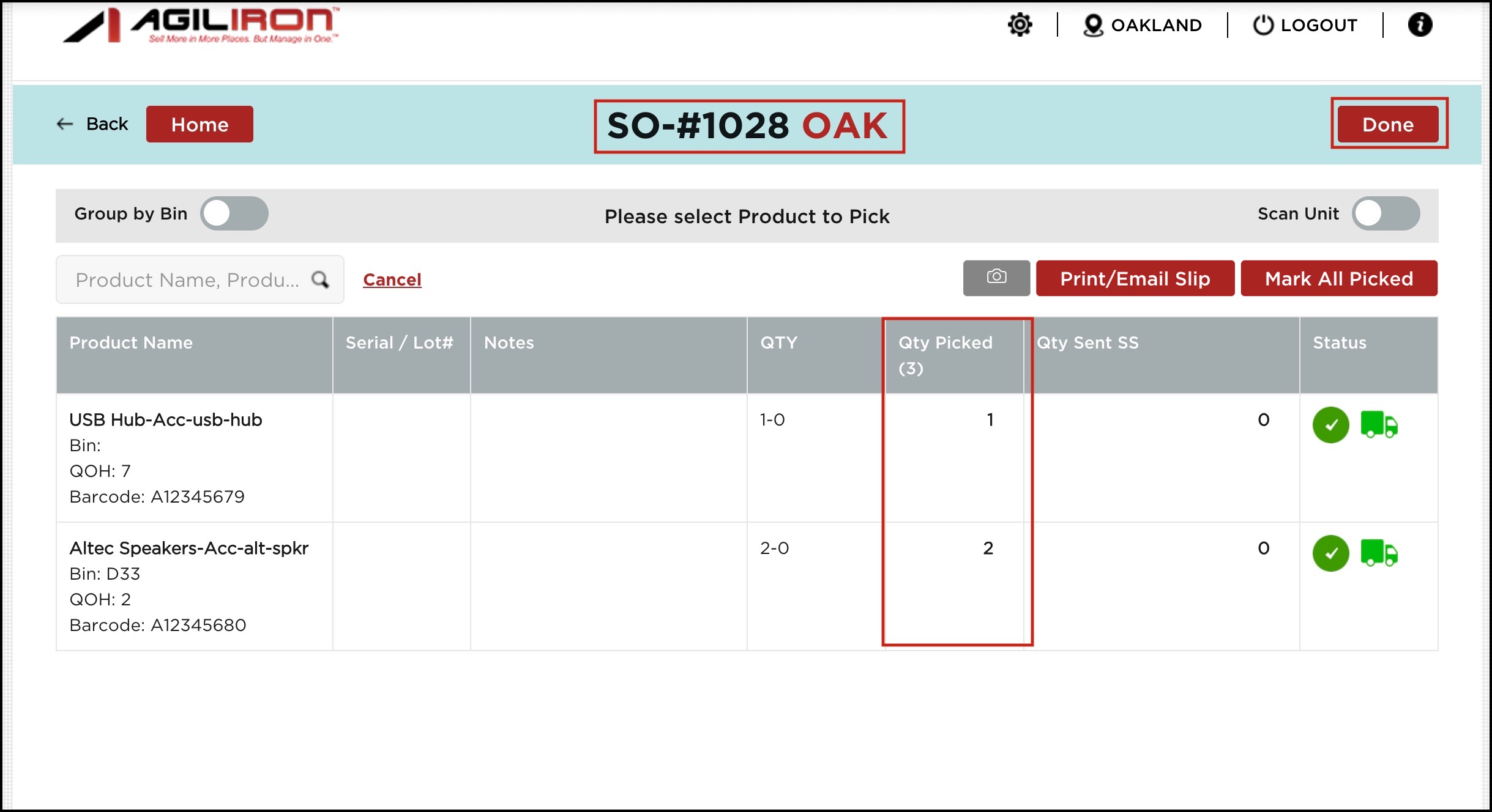 - The highlighted SO below is the one whose line items were picked. We've selected that order from the list.