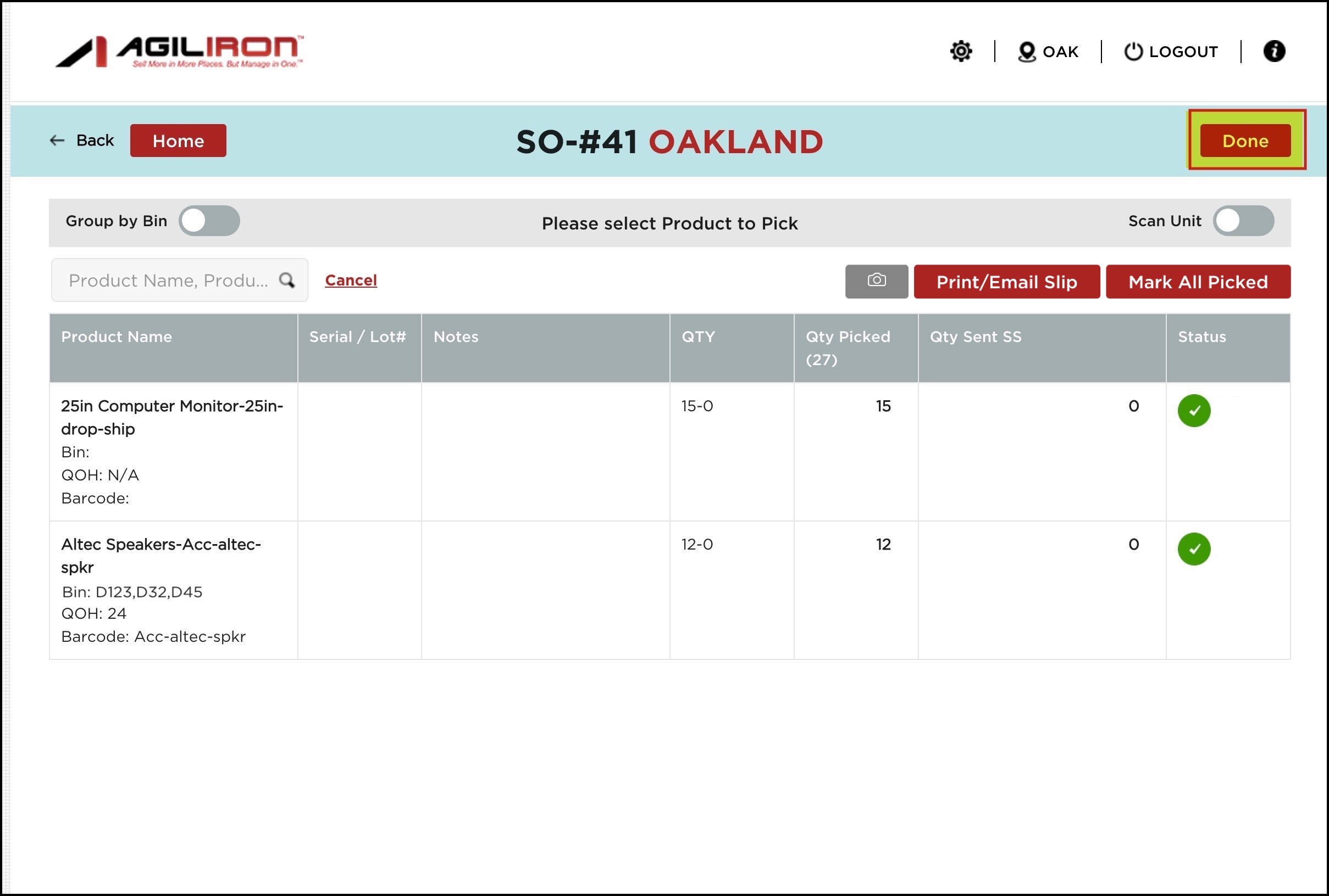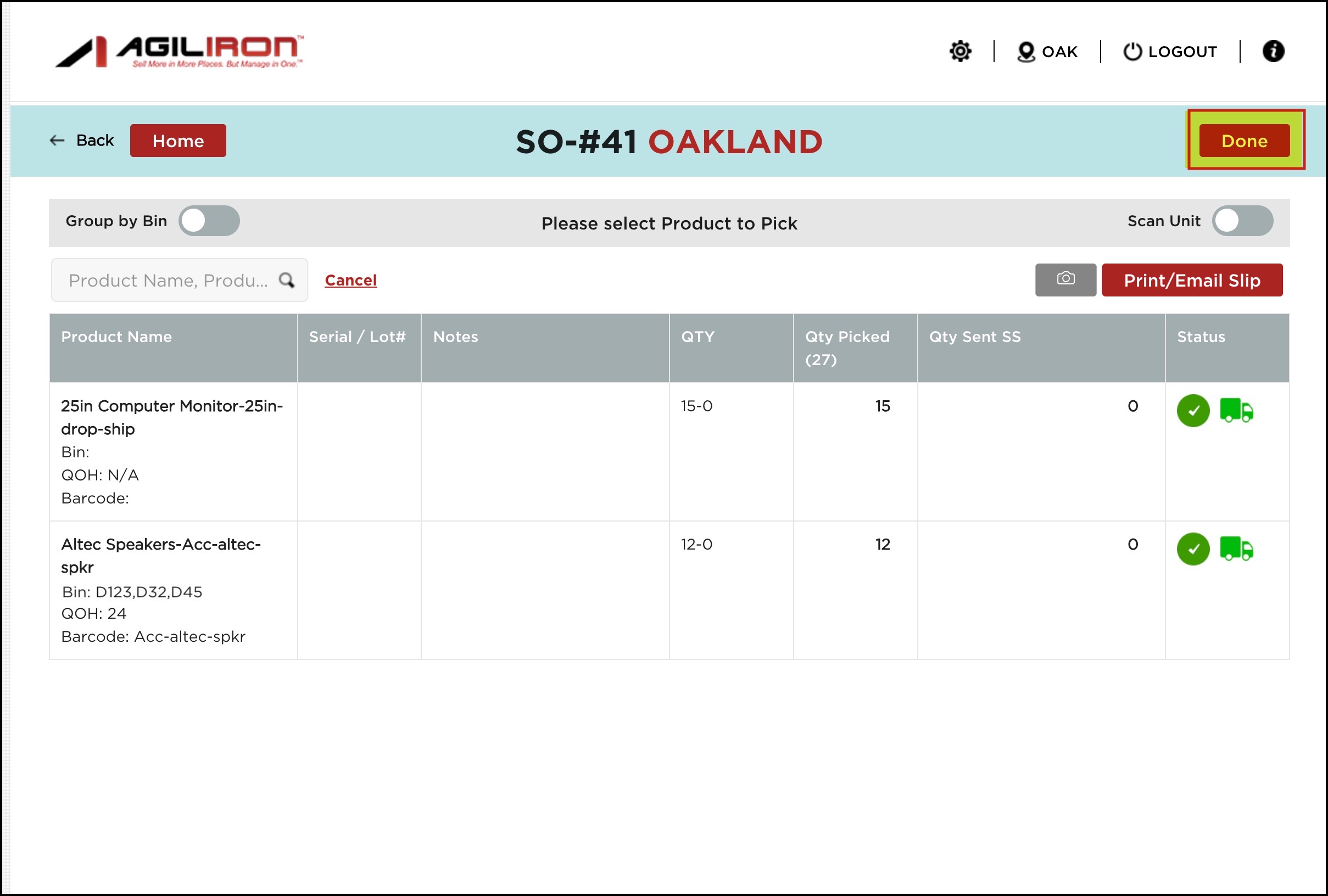 Note - Add Image and Add Signature features are also available when you group products by Bin or SKU.