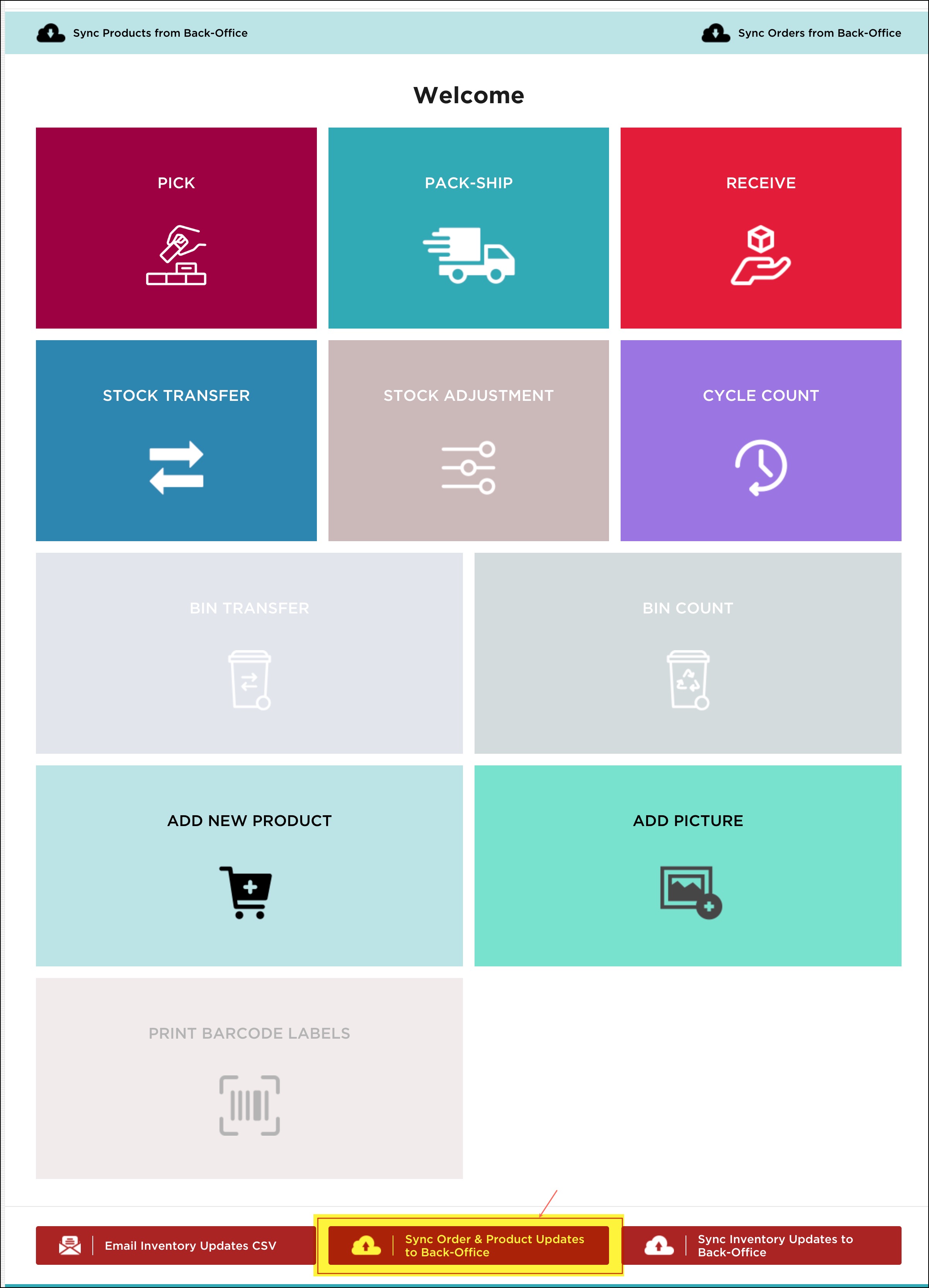 - Now on the home screen, you need to click on Sync Order & Updates to BackOffice to update the pictures in back office.