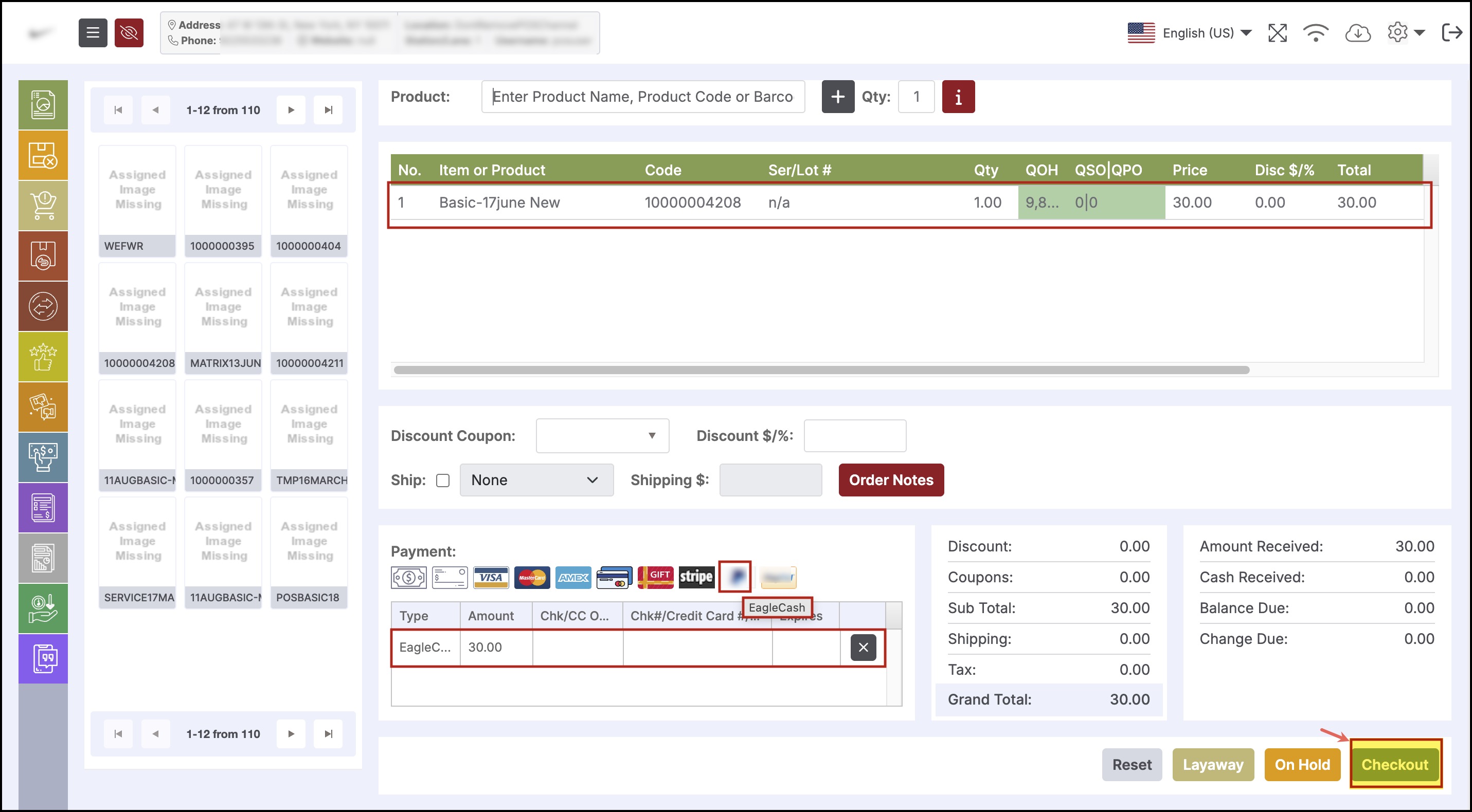 Those payment methods will be added to your POS account. Here we have added two payment methods as examples - EagleCash and Zelle.