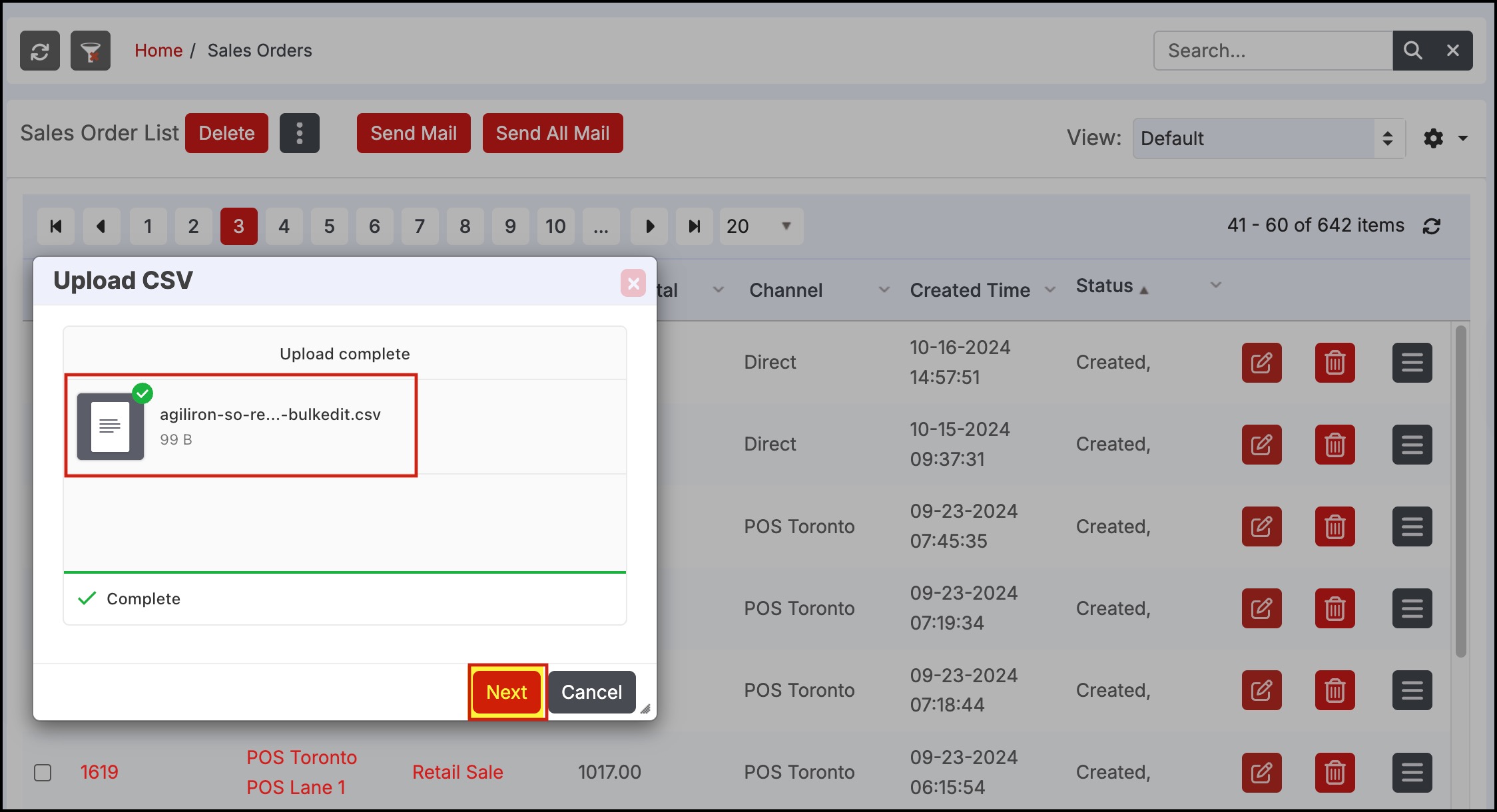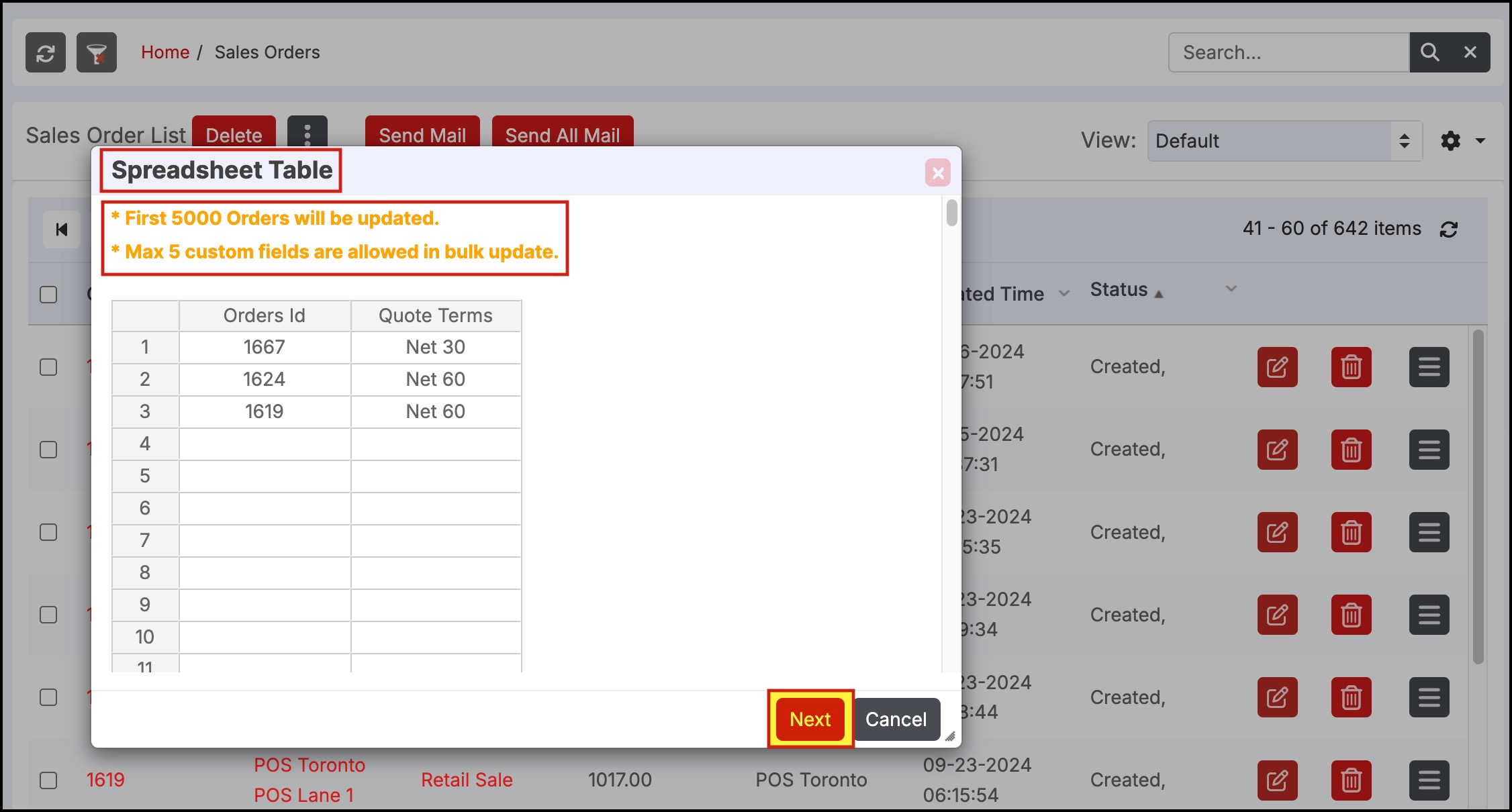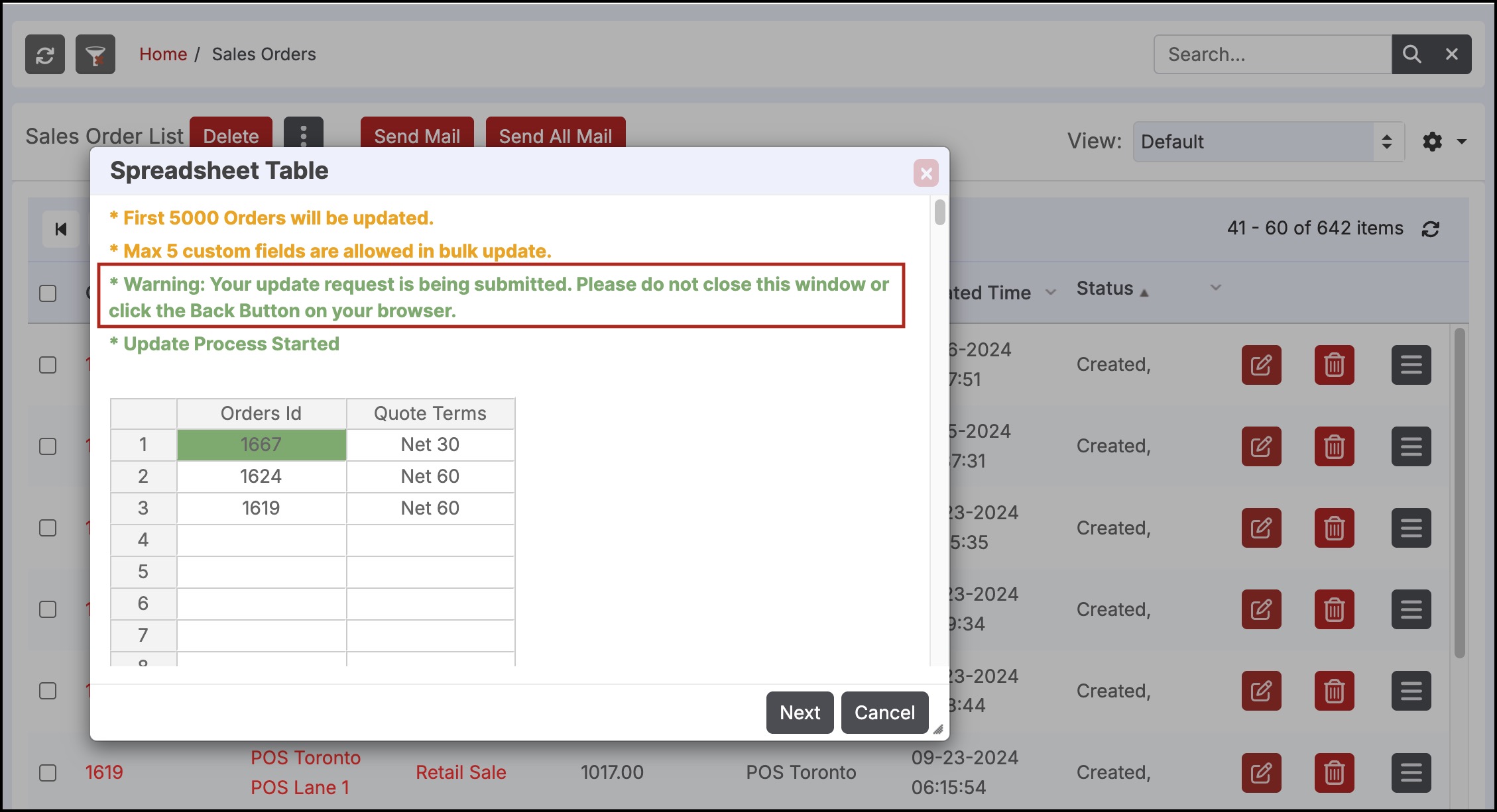 NEWPerforming bulk edit on a specific set of sales orders (uploading CSV file or spreadsheet table)