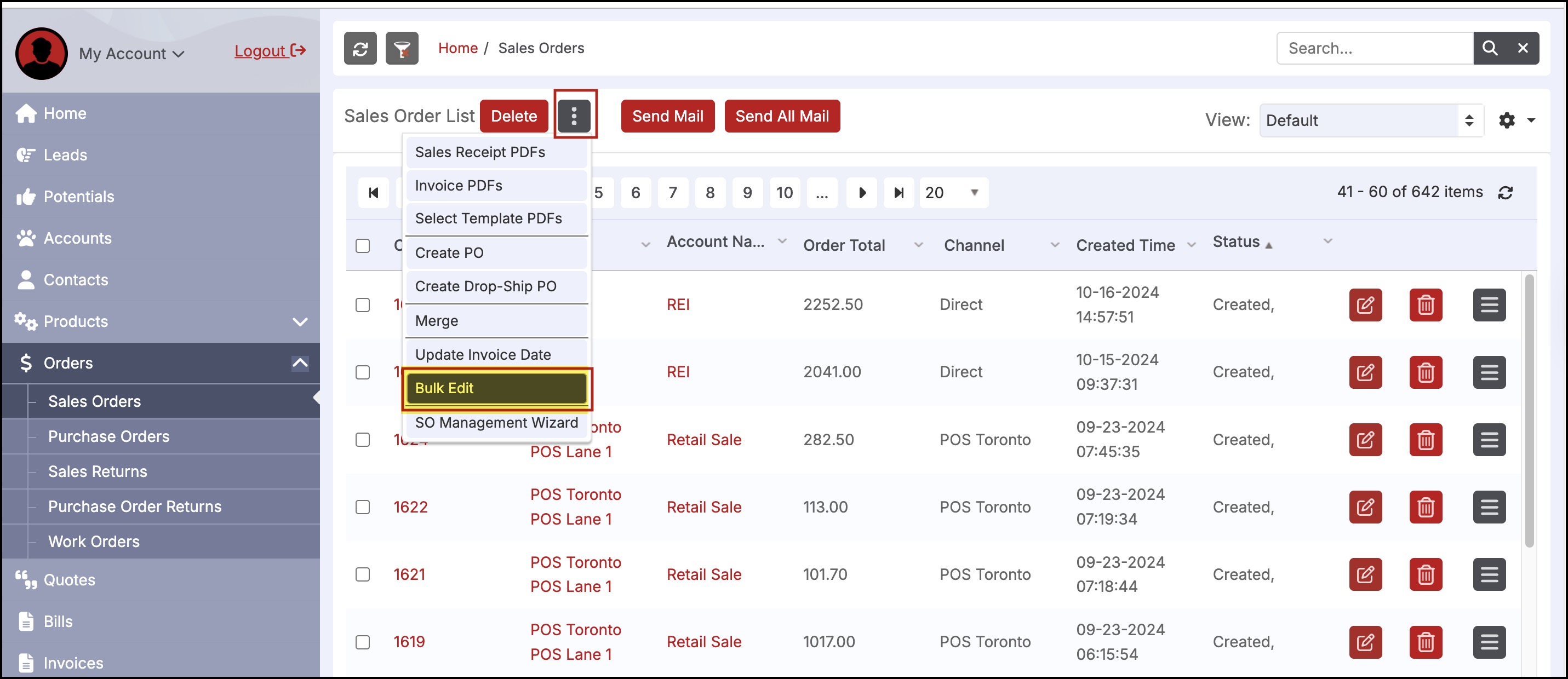 Update the existing sales orders in bulk. In this section, we've outlined the varied changes you can make to multiple sales orders in the easiest way.