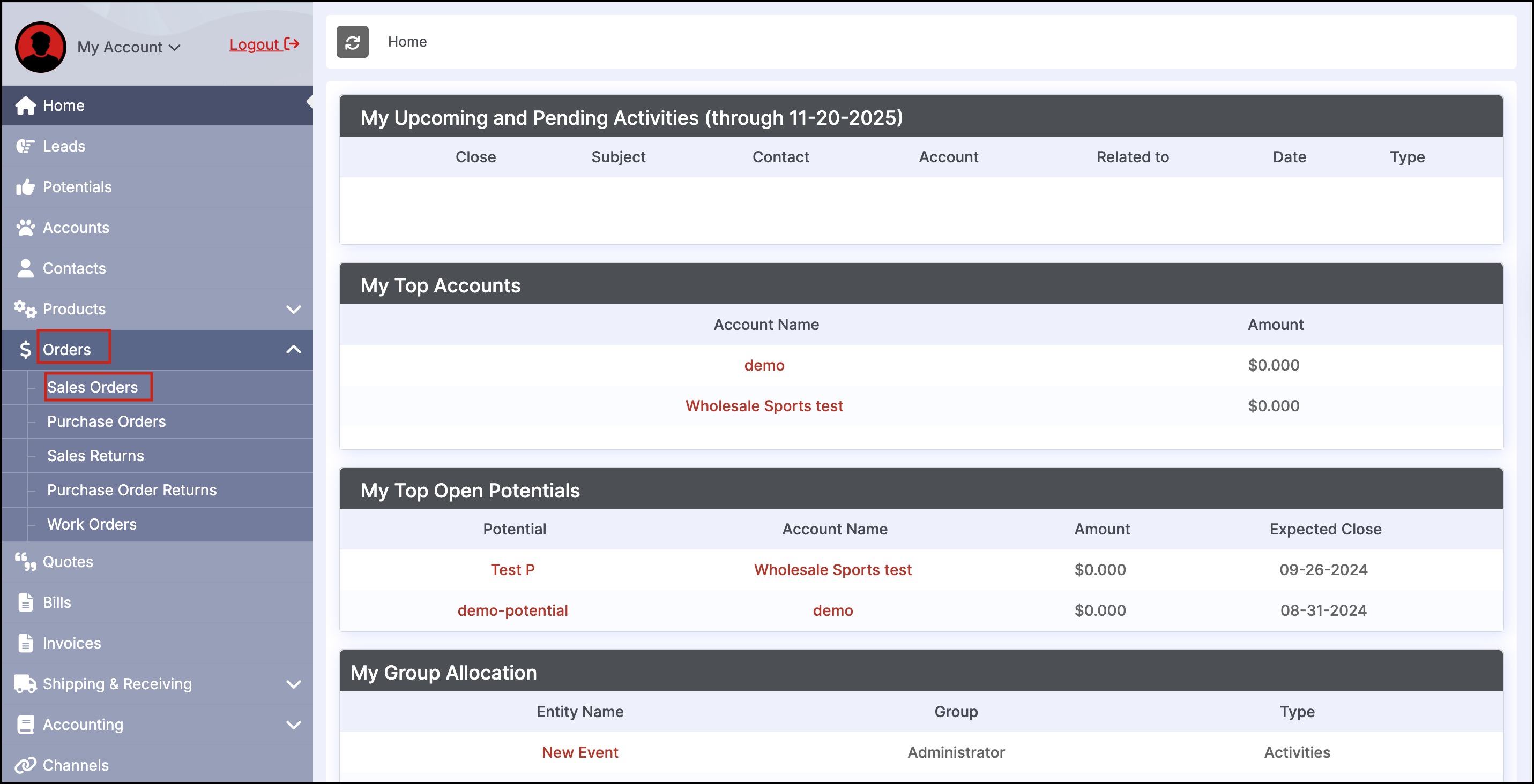 - On the left menu panel, under the Orders tab, Sales Orders will appear. Click on it.