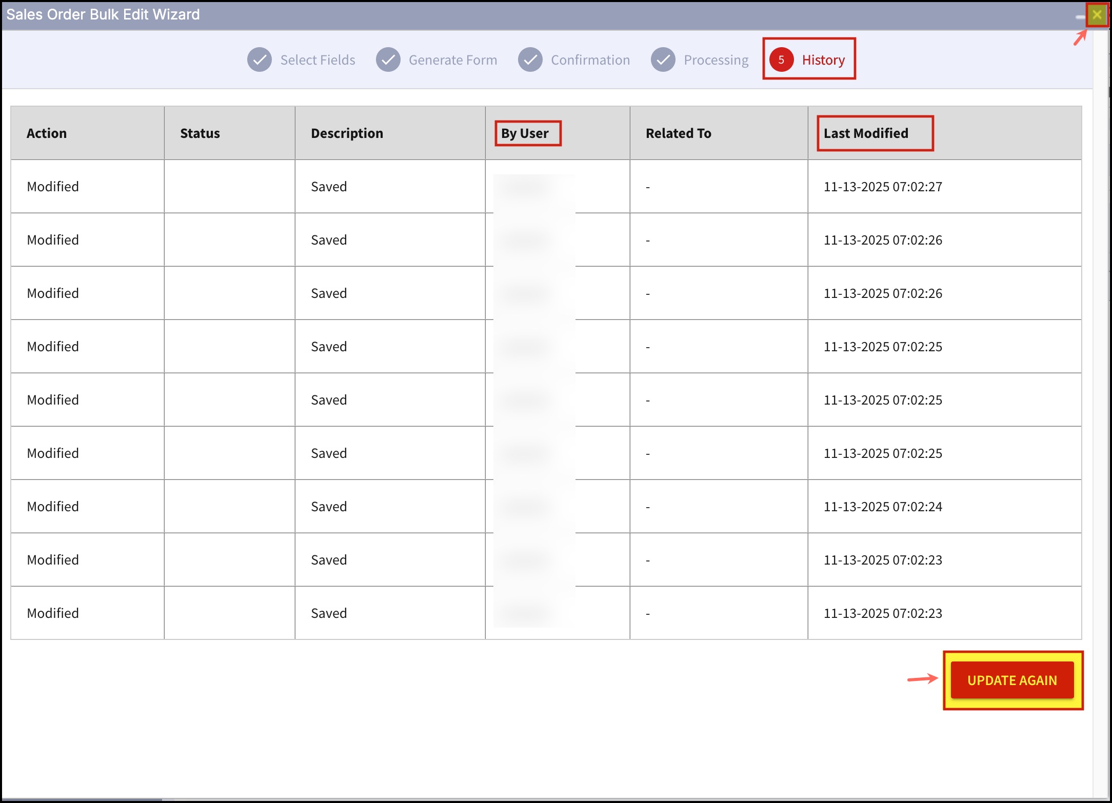- If you want to continue with the bulk edit process, click on Update Again button or simply close the window, if you are done with the changes.