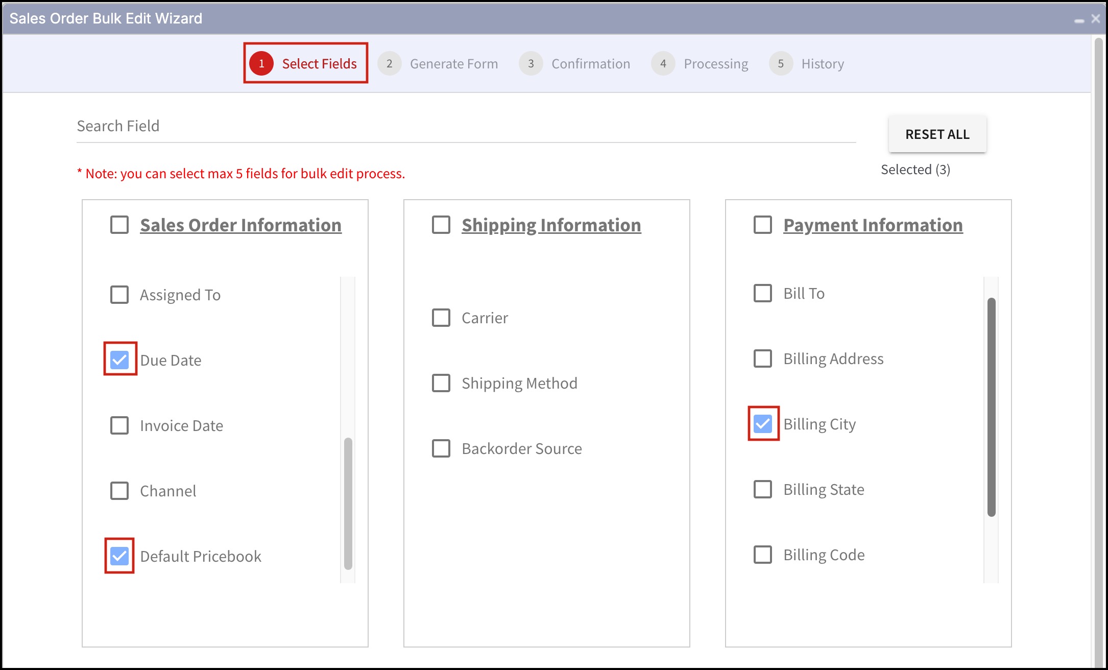 NOTE - You can select a maximum 5 fields to perform bulk edit.
