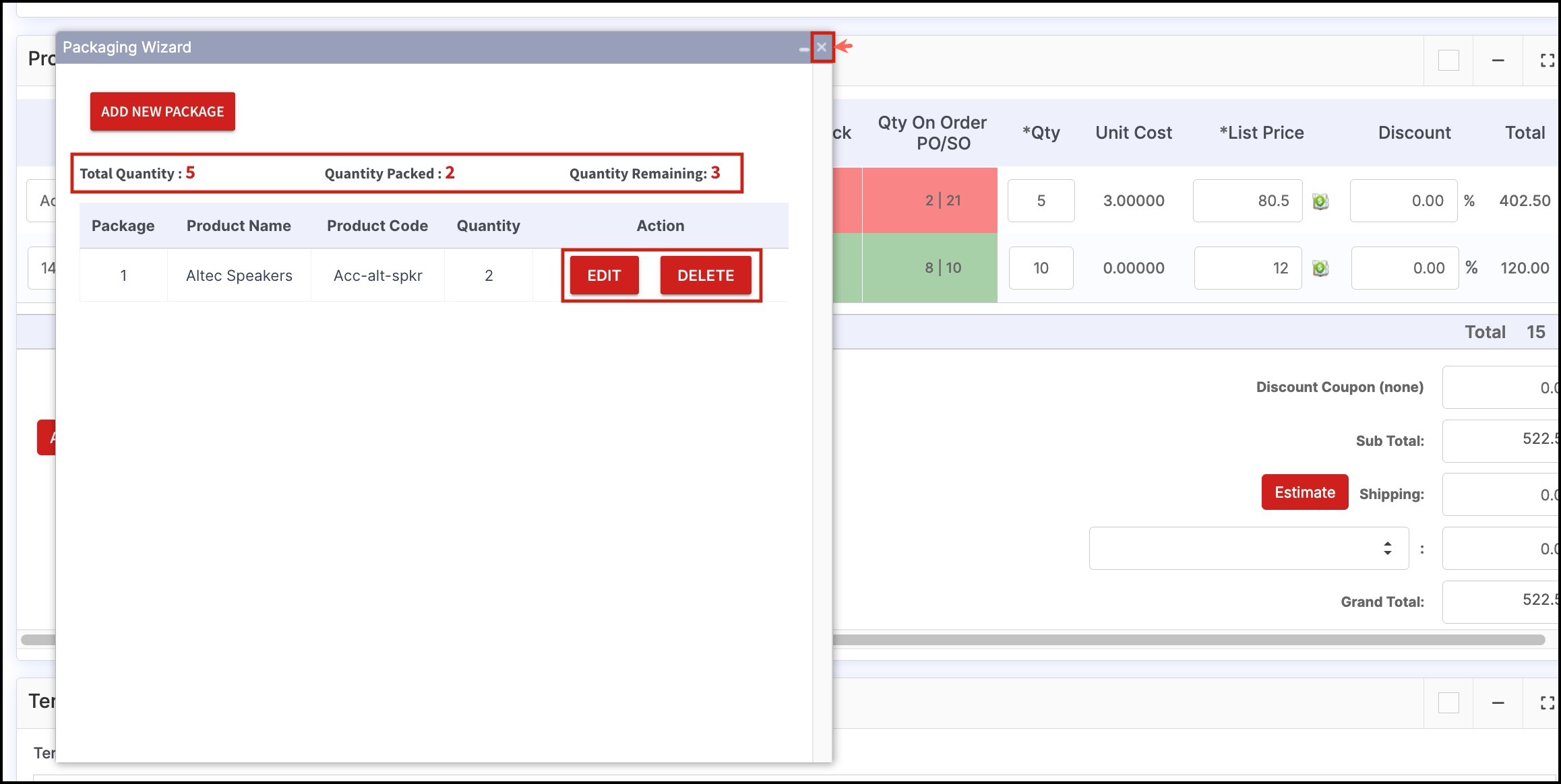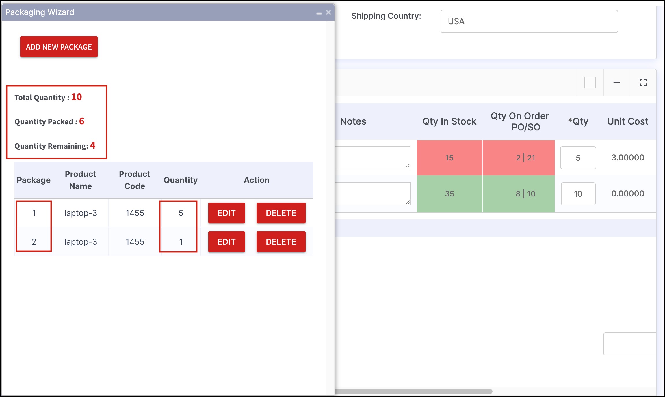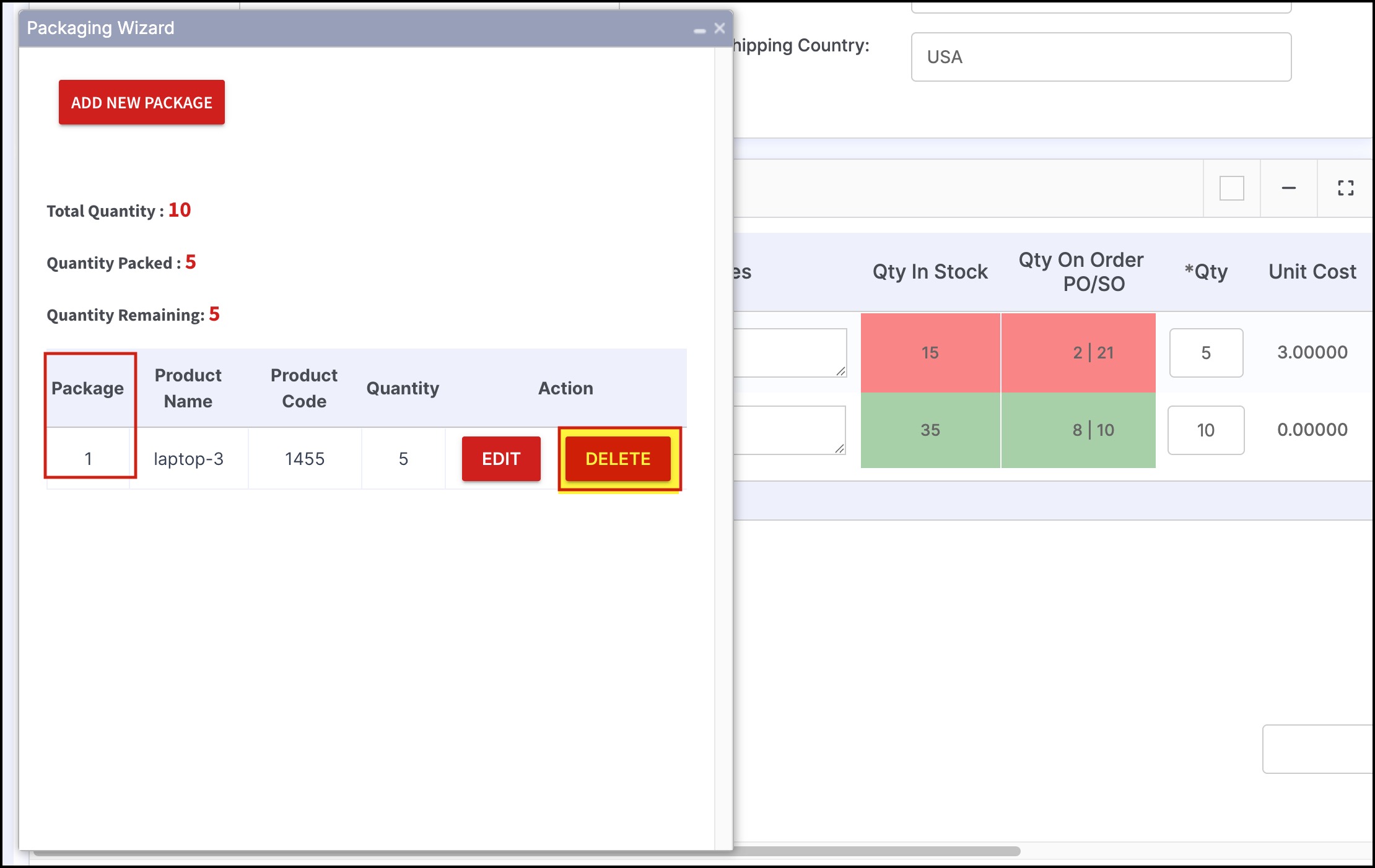 - And out of the remaining 5 quantities, we are adding Quantity 1 in a new package created that is named Package 2.