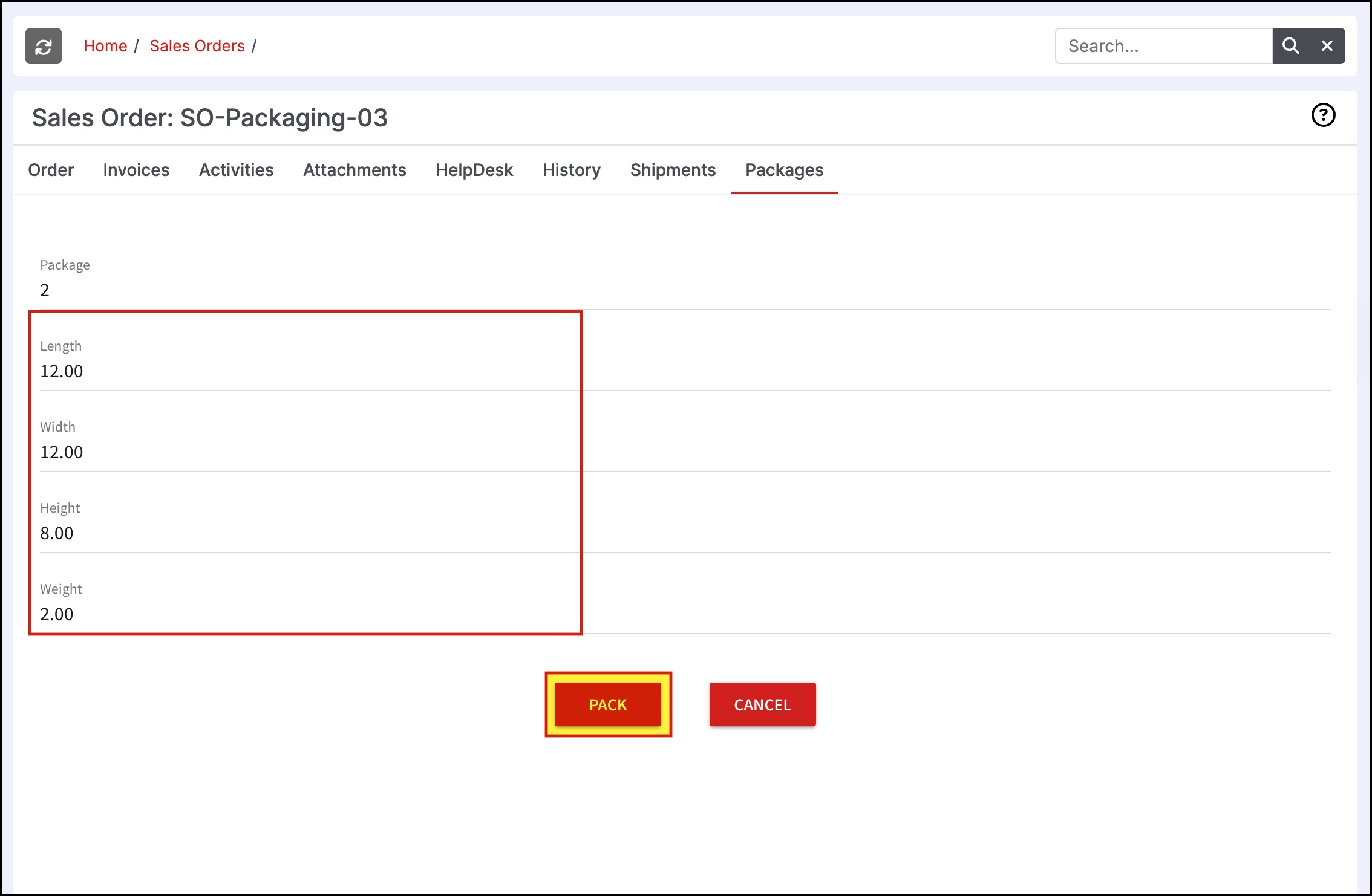 The new Packaging Flow allows to pack the line items of a particular sales order. Line Items of a sales order can be packed together as one package, or each line item can be packed separately as per the requirement.
