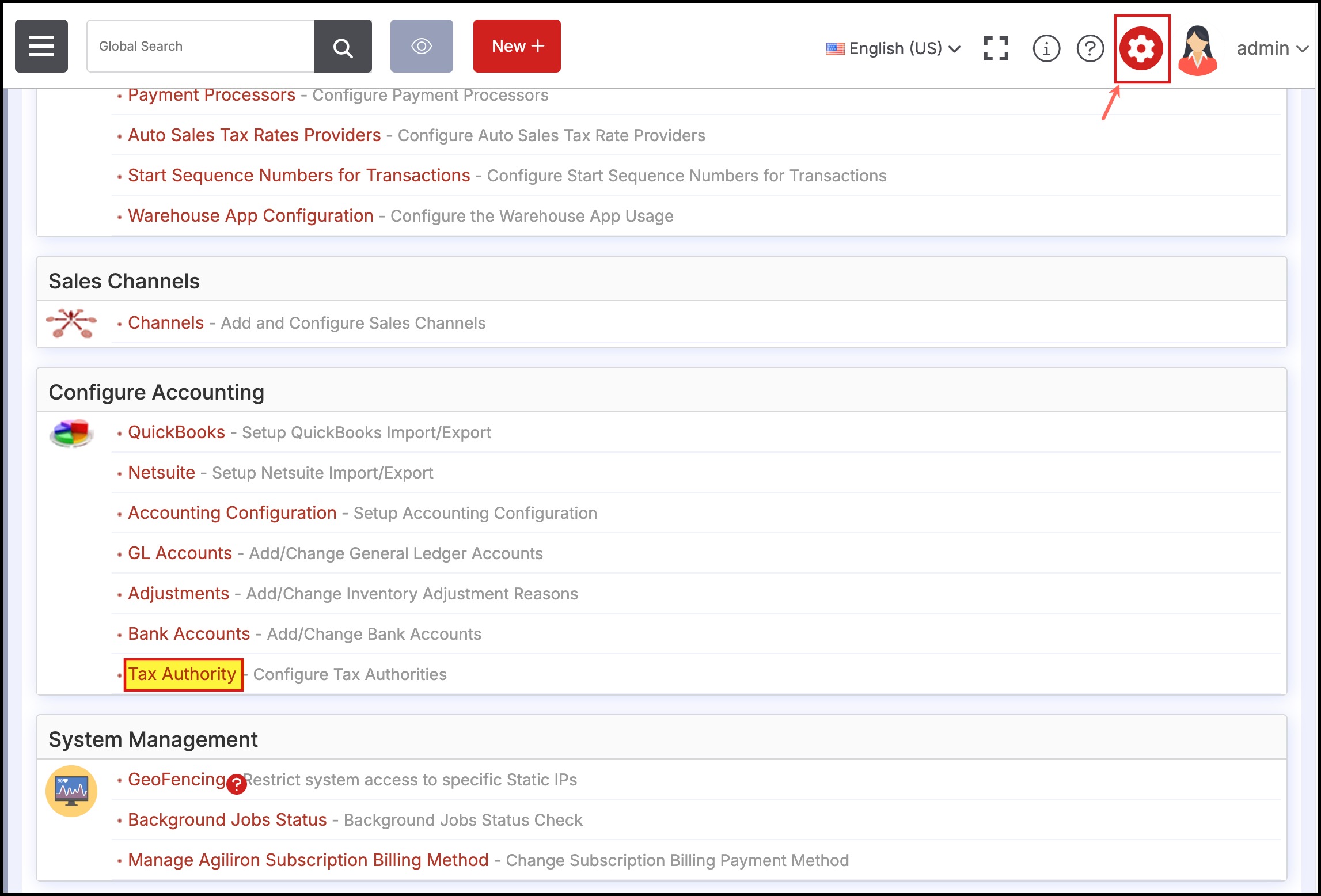 Follow the link "Settings > Tax Authority" to setup the various tax collection agencies relevant to the business based on your state and local sales tax requirements.