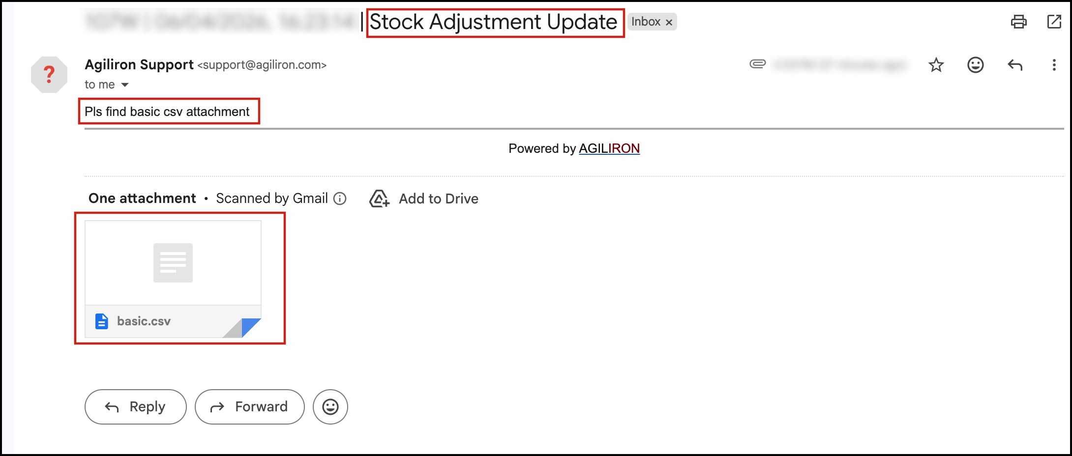 The email will be sent to the email recipients added to the Inventory Update CSV Email Address list.