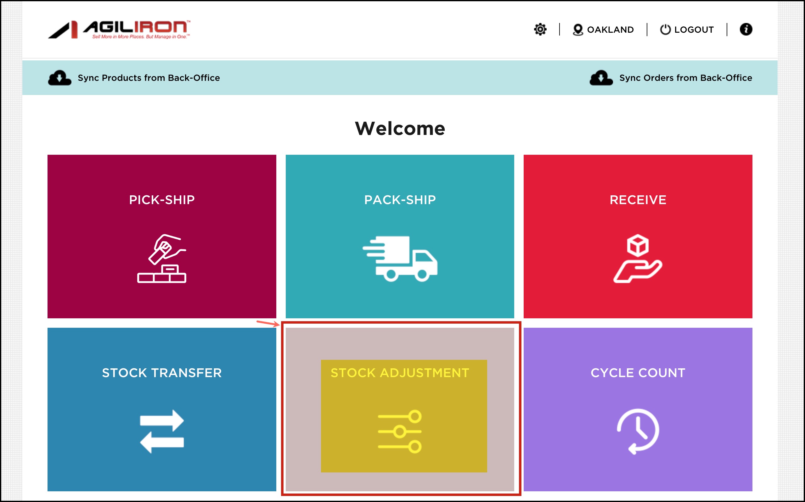 - Now on the home page, click on Stock Adjustment.