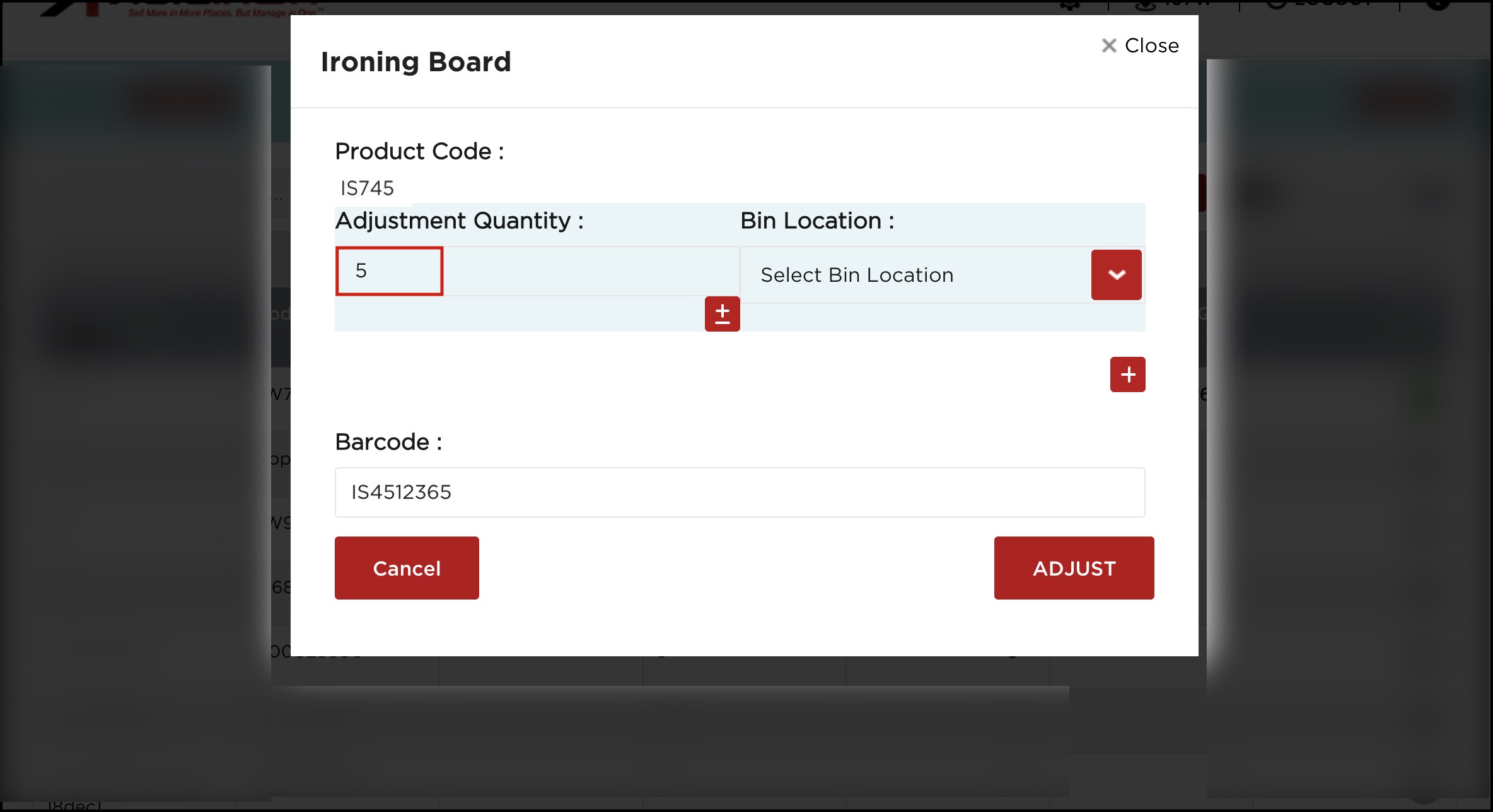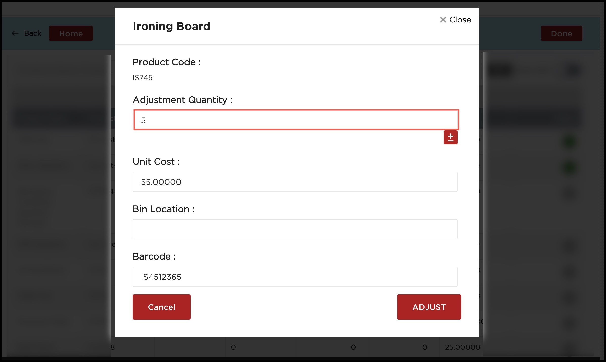 - A pop-up screen will appear where you must enter the adjustment quantity.