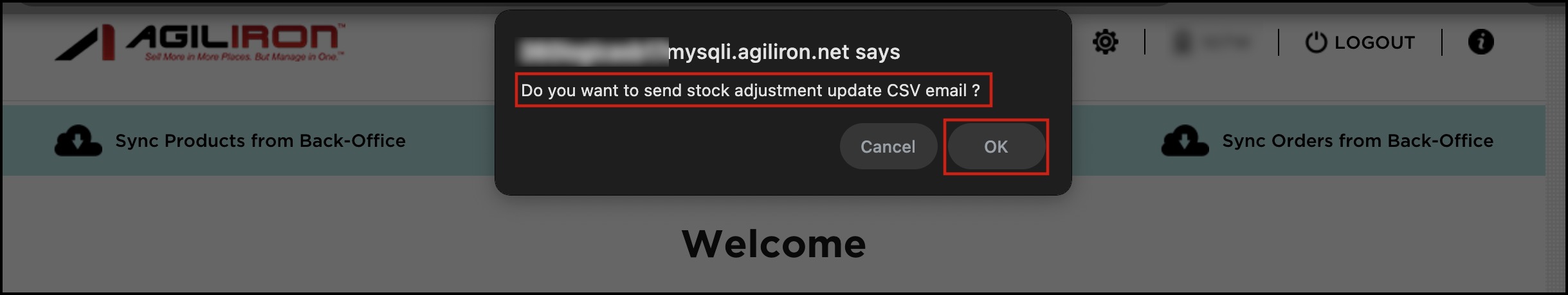 - If the Enable Auto Inventory Update Email setting is set to On, then you will see a message asking if you want to send an inventory update CSV email. Stock Adjustment update will be emailed after clicking on OK.