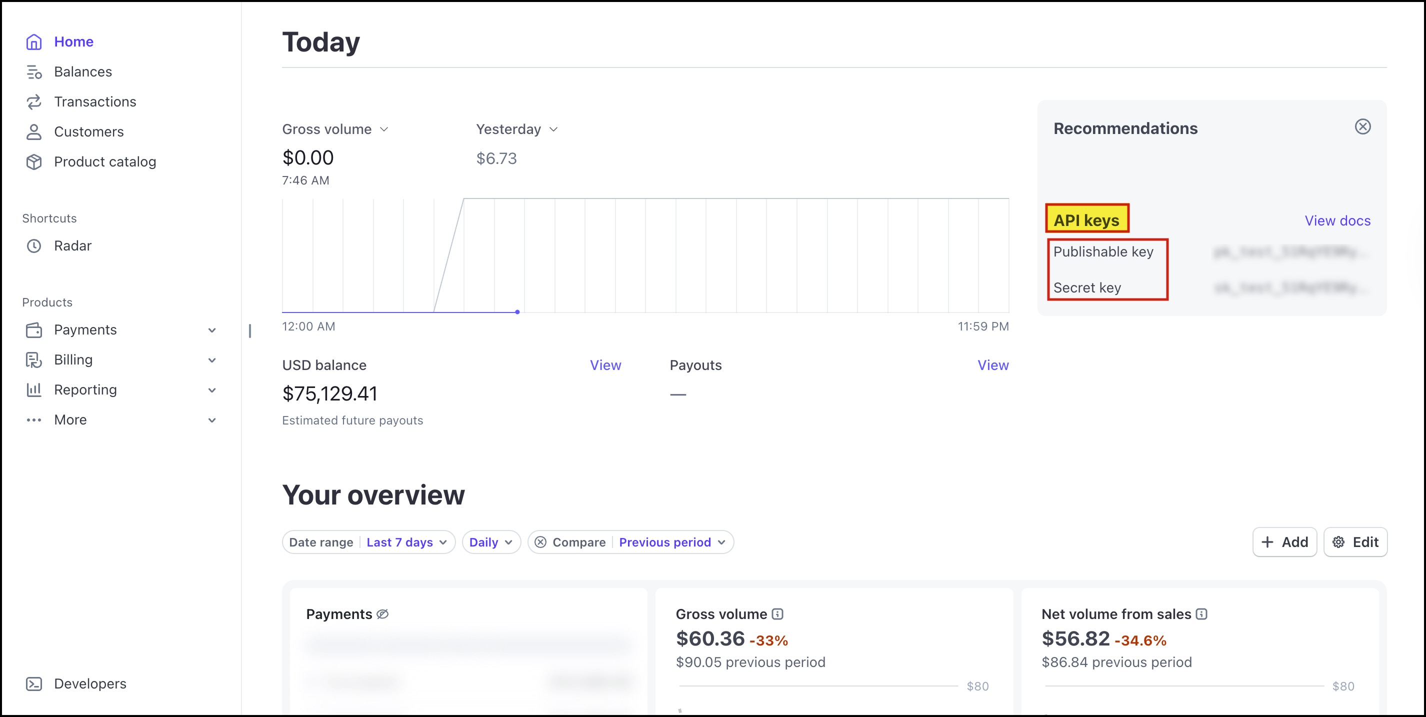 - After logging in, on the Dashboard, you can see API Keys, which you will require further for setup.