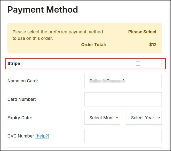 - Next when you go to the respective store, add products to the cart, checkout and continue to the Payment Method, you can see Stripe Payments for making payment for that particular order.