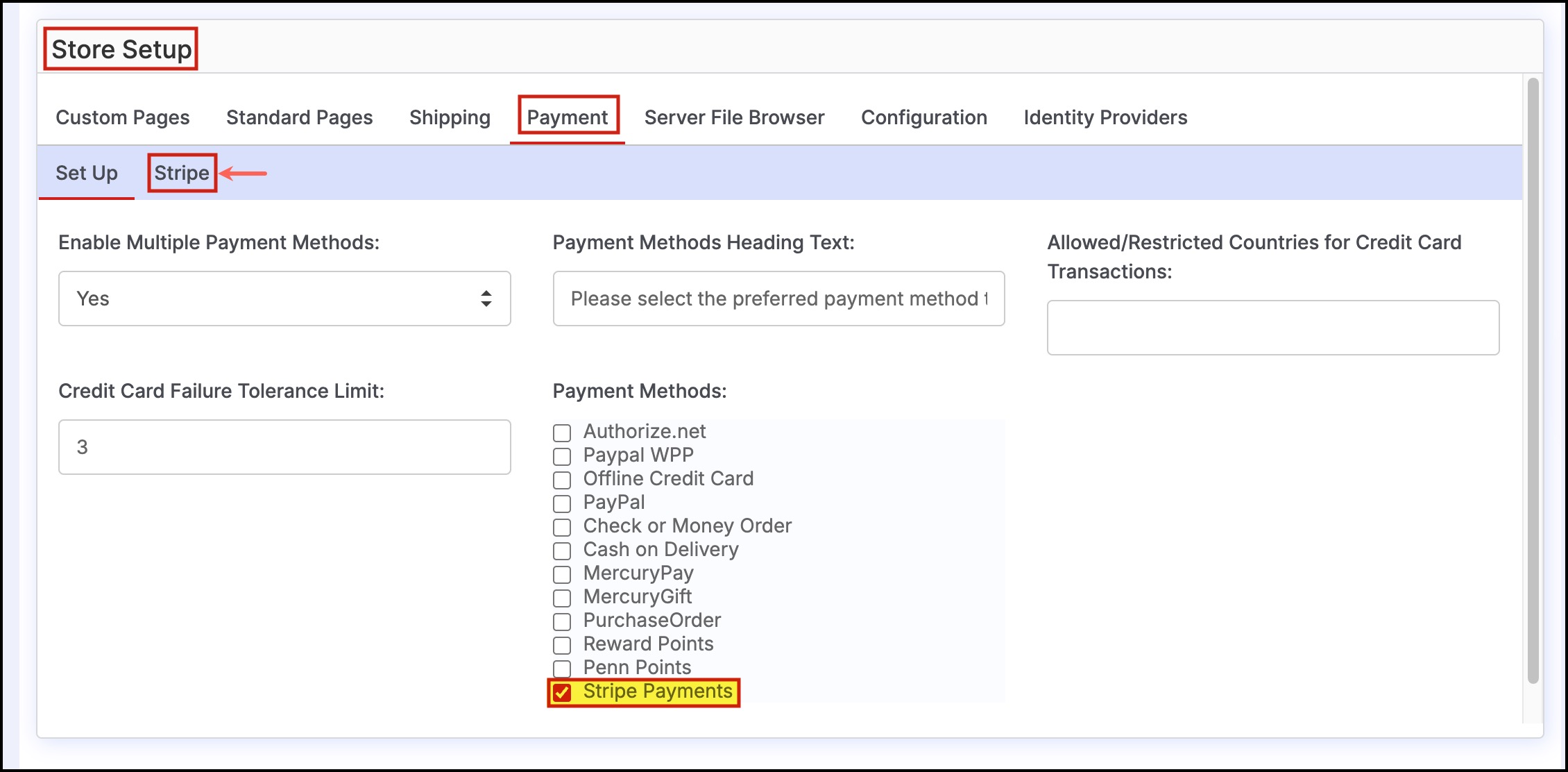 - From Payment Methods, select Stripe Payments by clicking on the checkbox.