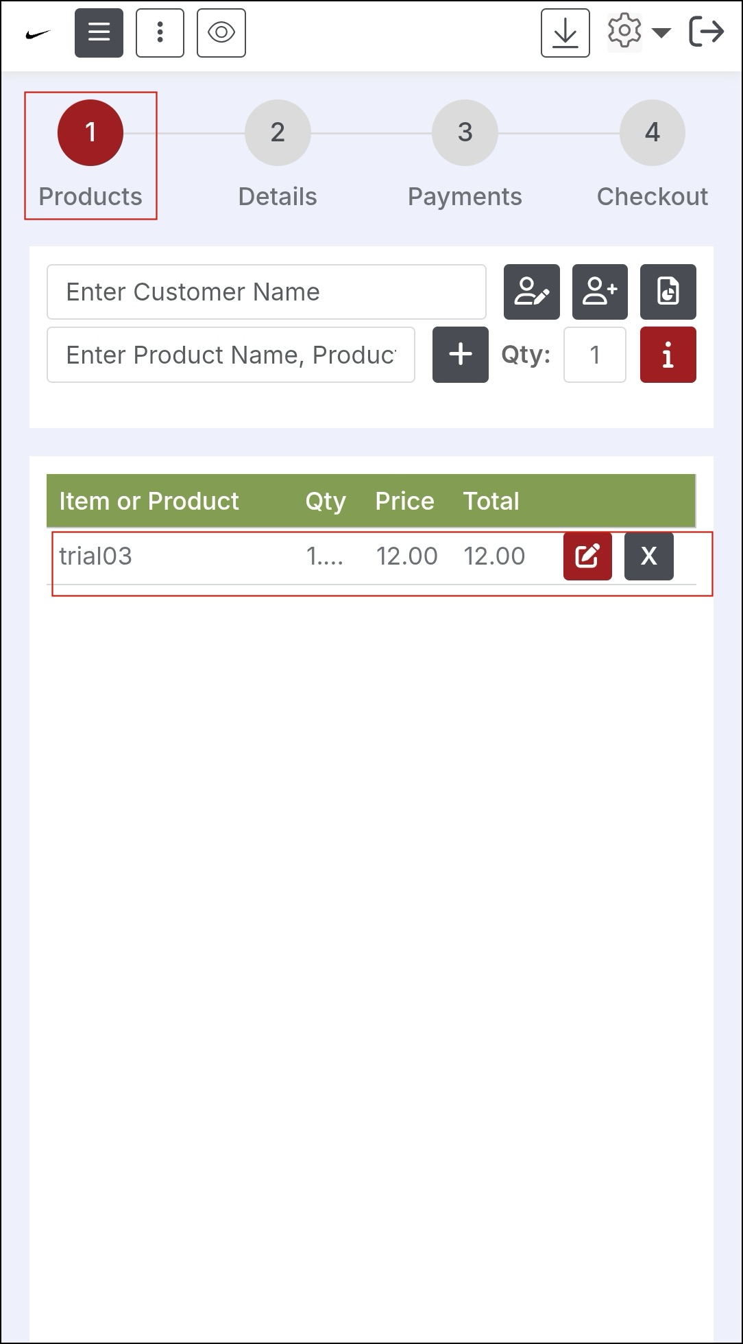 - Once the device pairing is successful, you can add products, select a credit card payment method, and click on Checkout.