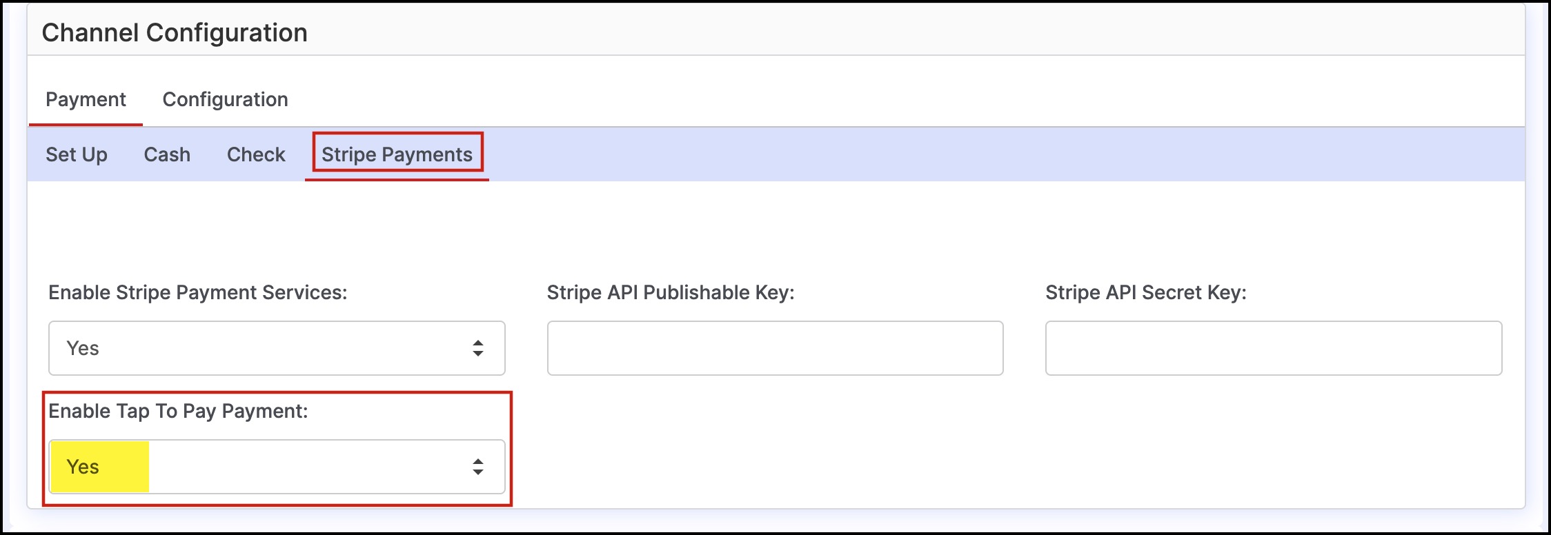 Now switch to the Stripe Payments tab and set Enable Tap to Pay Payment to Yes.