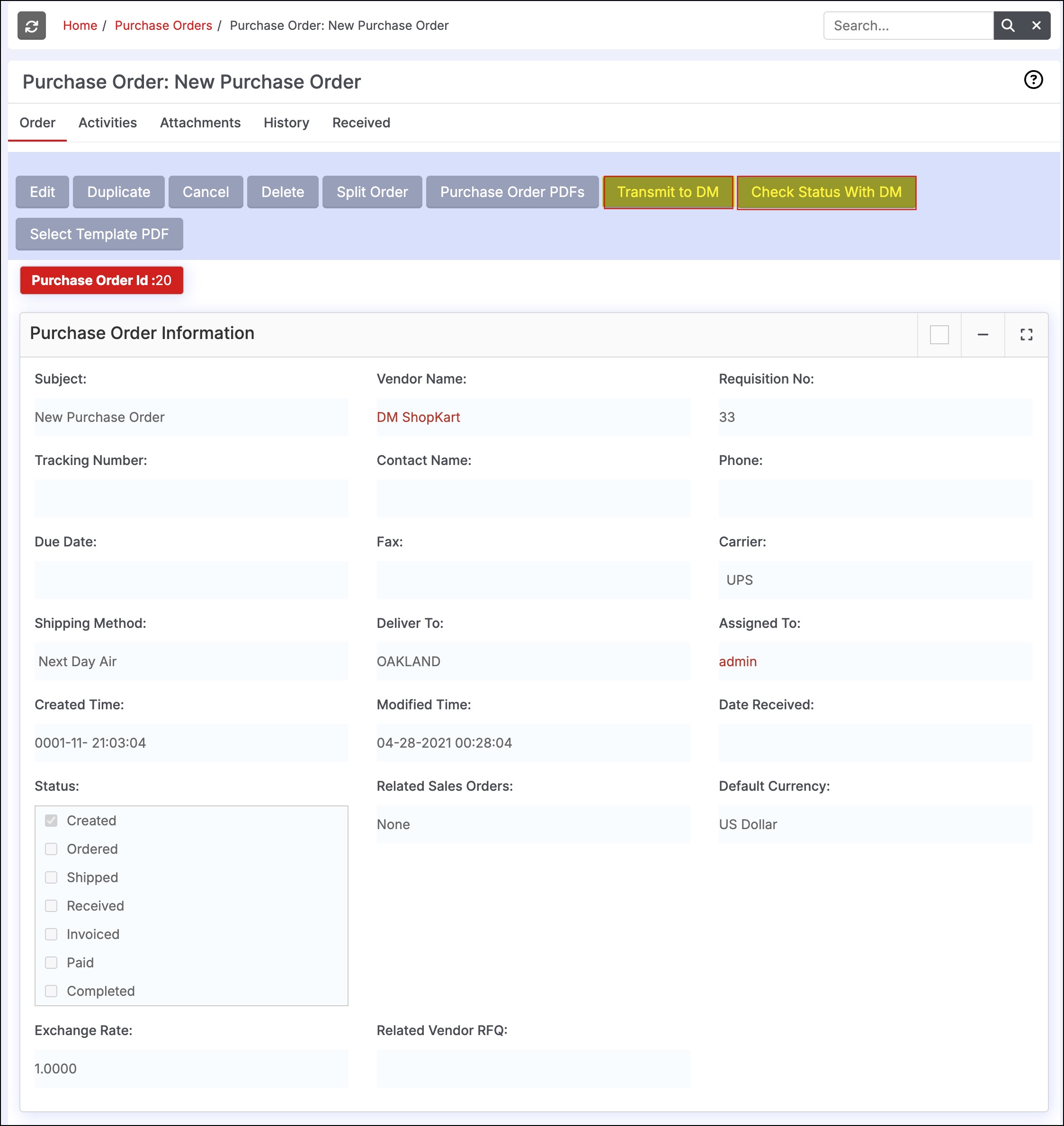 For sending the purchase order, the order needs to be associated with the vendor that you have configured. While creating a supplier connection we have added a vendor to which it relates to.