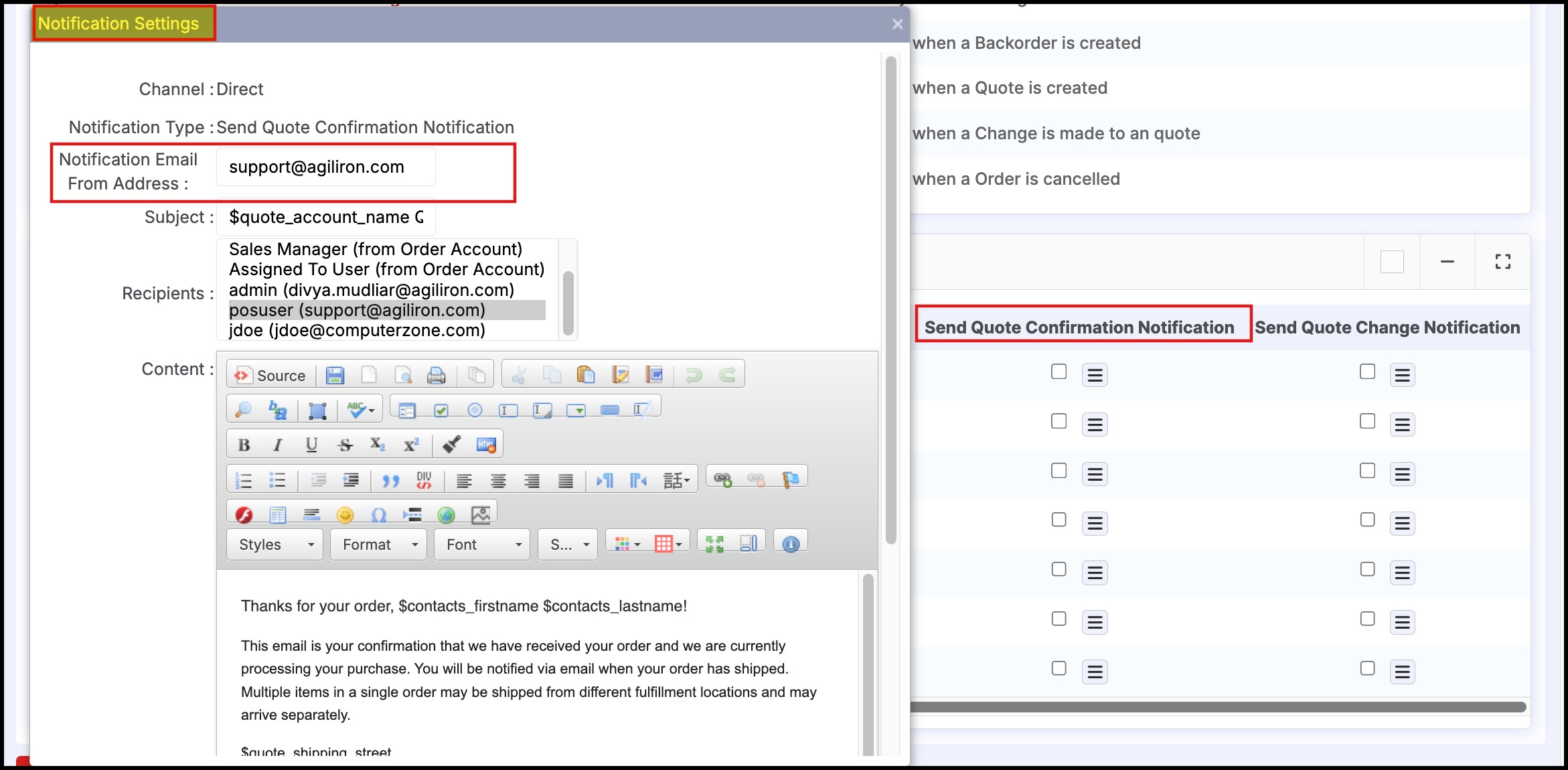 Earlier, Agiliron supported email notifications only for sales orders but now it has also integrated notifications for quotes.