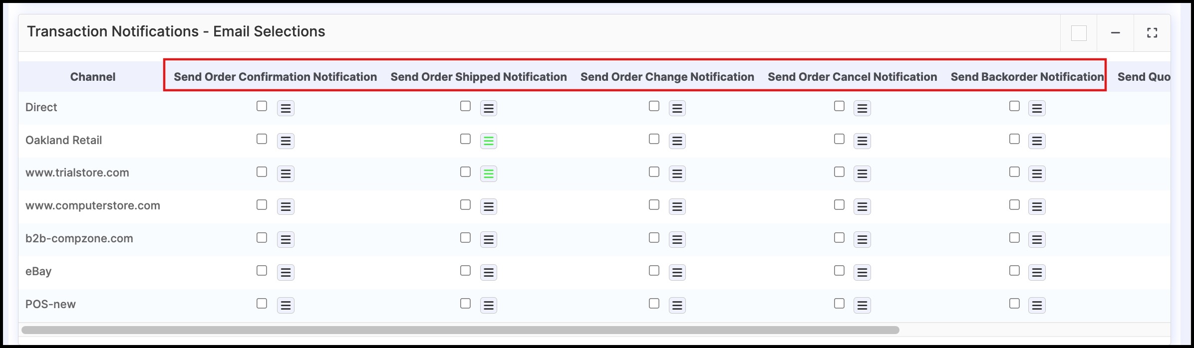 This set of notifications deals with configuration for Sales Order status notifications in relation to the channels that have been created for the business.